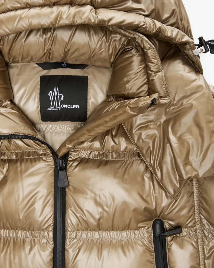 Rochelair Daunenmantel für Damen von Moncler Grenoble in Gold. Das Oversize-Modell überzeugt dank des Lackoptik-Steppmusters und der besonders leichtenDaunen-Feder-Füllung mit erstklassiger Wärmeisolierung. Zusammen mit diversenpraktischen Details punktet der Mantel zudem mit wasserabweisender, winddichtersowie atmungsaktiver Funktion als vielseitiger Begleiter. Zugleich runden Logo-Applikationen das Gesamtbild harmonisch ab.