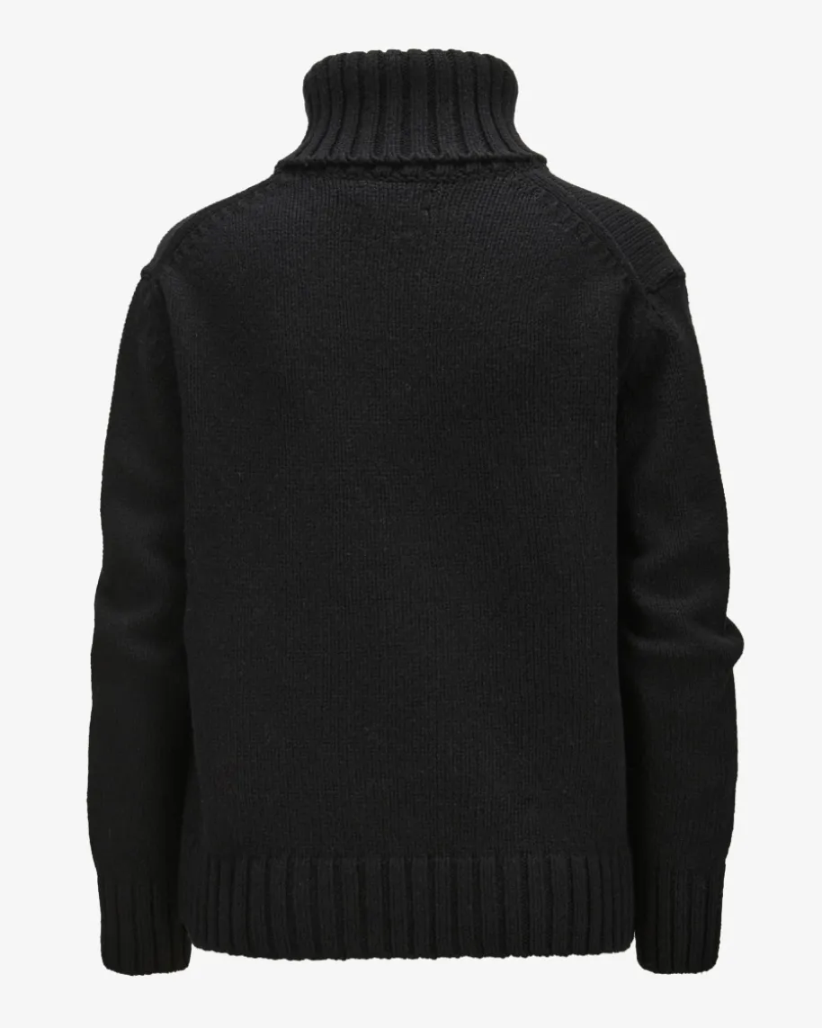 Rollkragenpullover für Damen von Polo Ralph Lauren in Schwarz und Off-White.Eine Ikone des amerikanischen Lifestyles – sportlich, preppy, klassisch. Auchdieses Modell mit breitem Rollkragen präsentiert sich mit labeltypischerPoloreiter-Intarsie, während die weiche Woll-Qualität für angenehmenTragekomfort sorgt.