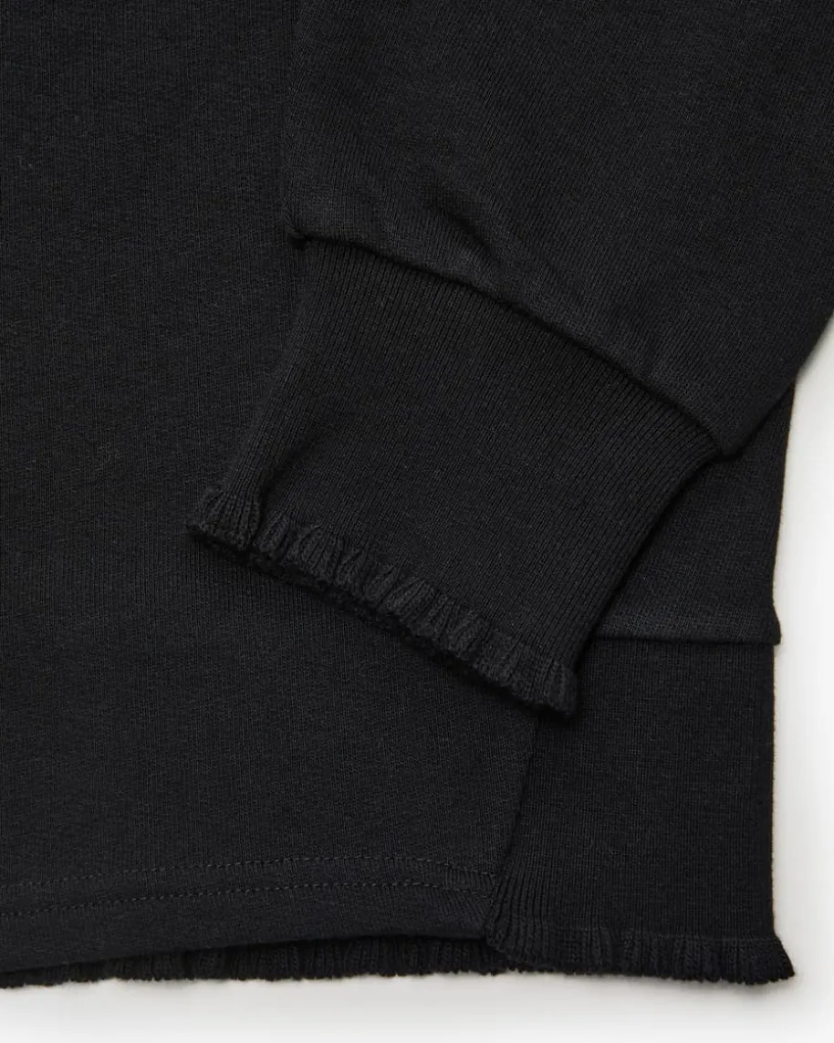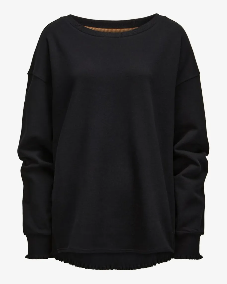 Rose Sweatshirt für Damen von Love Joy Victory in Schwarz. Ein modischesWohlfühl-Piece! Dank der weichen Baumwoll-Qualität erhält das Modell eine weicheHaptik und einen modisch-legeren Look, während die Rippstrick-Details mitzarten Rüschen optische Highlights setzen.