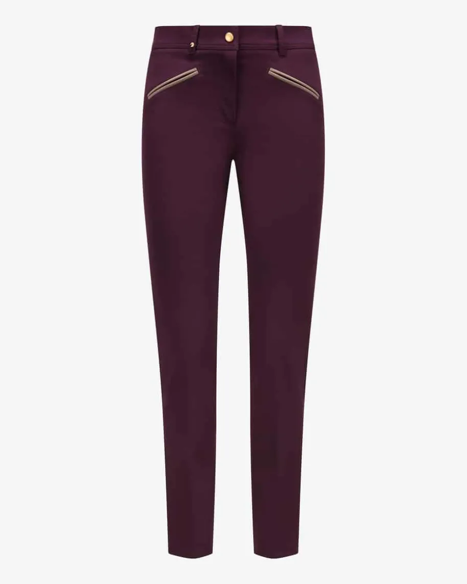 Royal ML Hose für Damen von Pamela Henson in Bordeaux. Hochwertige Verarbeitungund modisches Design zeichnen die Modelle des Damenlabels aus, während dercharakteristische Reiterhosen-Look eine einzigartige Note verleiht. Dankbesonders elastischer Qualität garantiert die Hose eine feminine Passformund überzeugt so als kombistarker Favorit für trendsichere Damen.