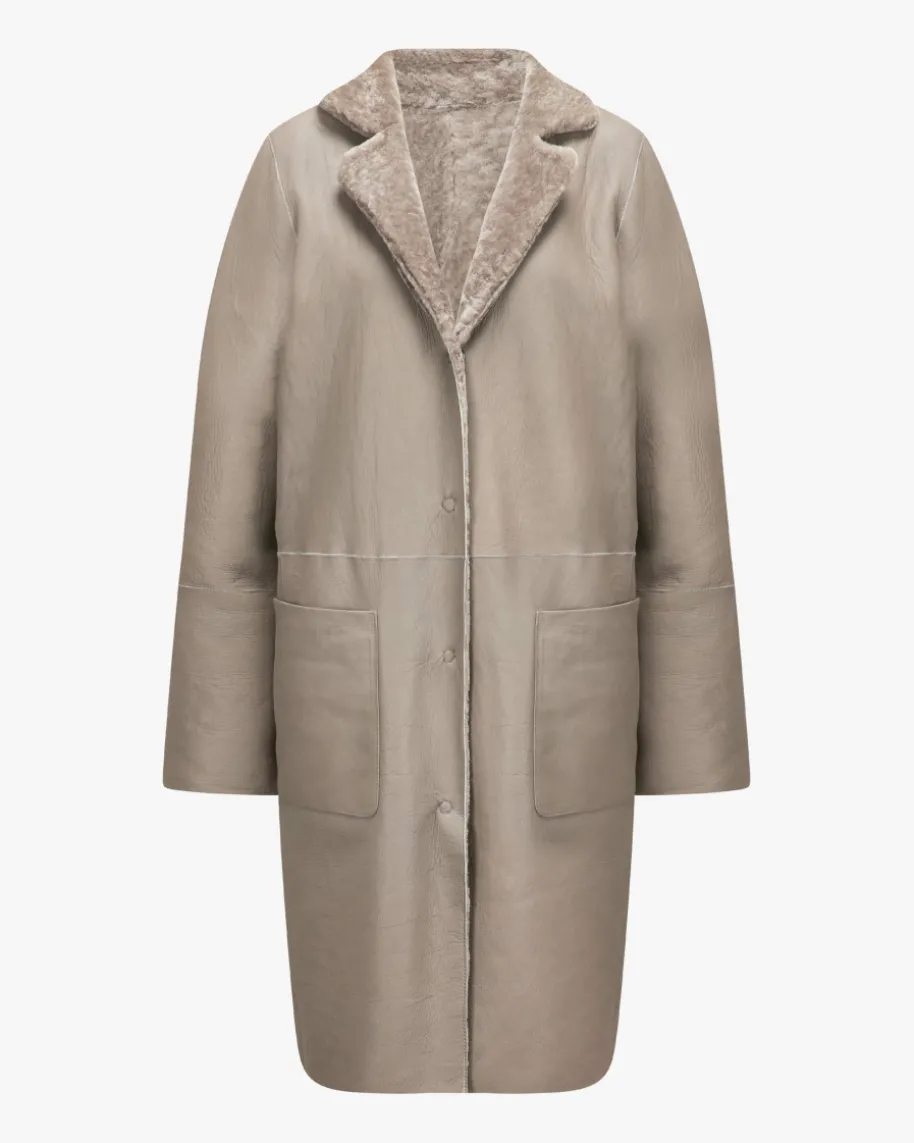 Sabine Schaffell-Wendemantel für Damen von Nove in Taupe. Eine Marke die fürhochwertige Essentials mit Fokus auf Klarheit, Funktionalität und femininerSilhouette steht. Auch dieses Modell in hochwertiger Lederverarbeitung überzeugtmit angenehm weicher Schaffell-Innenseite, während die Wendefunktion einenzeitlosen und zugleich praktischen Begleiter für vielseitige Styles kreiert.