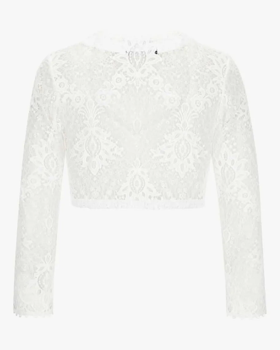 Samantha Dirndlbluse für Damen von Kinga Mathe in Weiß. Dank der feinen Spitzesowie den Paspelierungen erhält das Modell einen traditionellen und zugleichromantischen Charakter.