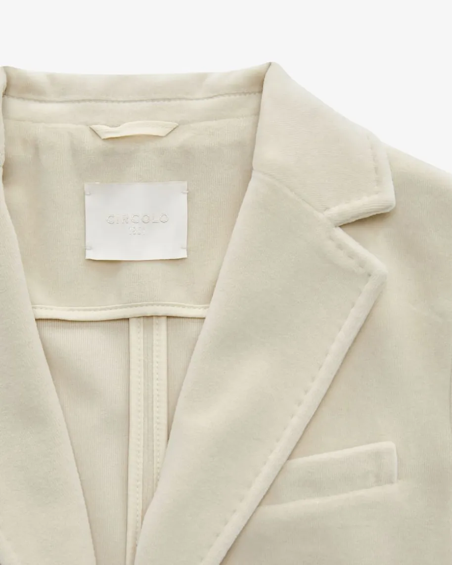 Samtblazer Slim Fit für Damen von Circolo 1901 in Creme. Das ungefütterte Modellpräsentiert sich in weicher Samt-Qualität, welche sowohl haptisch als auchoptisch überzeugt und zusammen mit dem passenden Kleid oder Hose im femininenPower-Look erstrahlt.