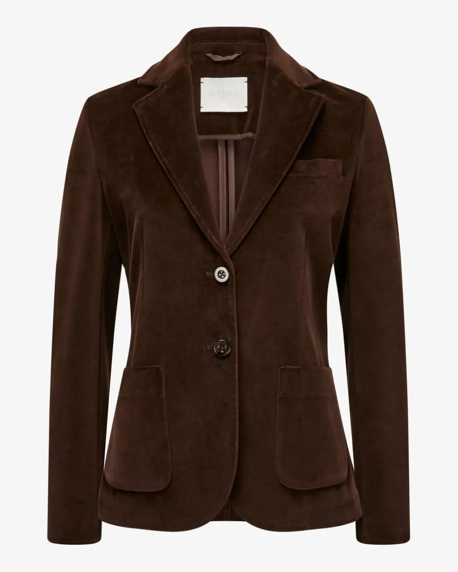 Samtblazer Slim Fit für Damen von Circolo 1901 in Braun. Das ungefütterte Modellpräsentiert sich in weicher Samt-Qualität, welche sowohl haptisch als auchoptisch überzeugt und zusammen mit dem passenden Kleid oder Hose im femininenPower-Look erstrahlt.