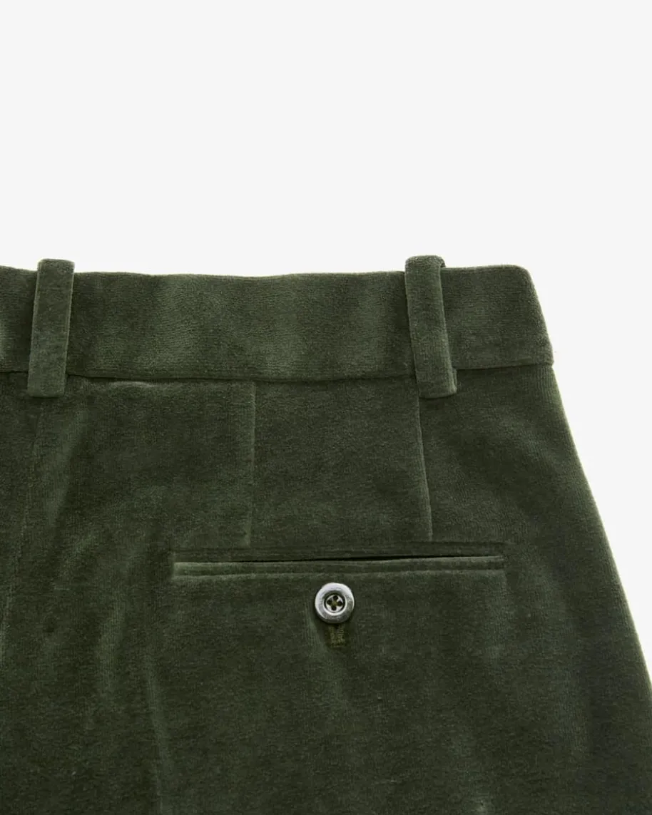 Samthose für Damen von Circolo 1901 in Tanne. Das Modell mit weitem Bein undhohem Bund präsentiert sich in weicher Samt-Qualität, welche sowohl haptisch alsauch optisch überzeugt und zusammen mit dem passenden Blazer im femininen Power-Look erstrahlt.