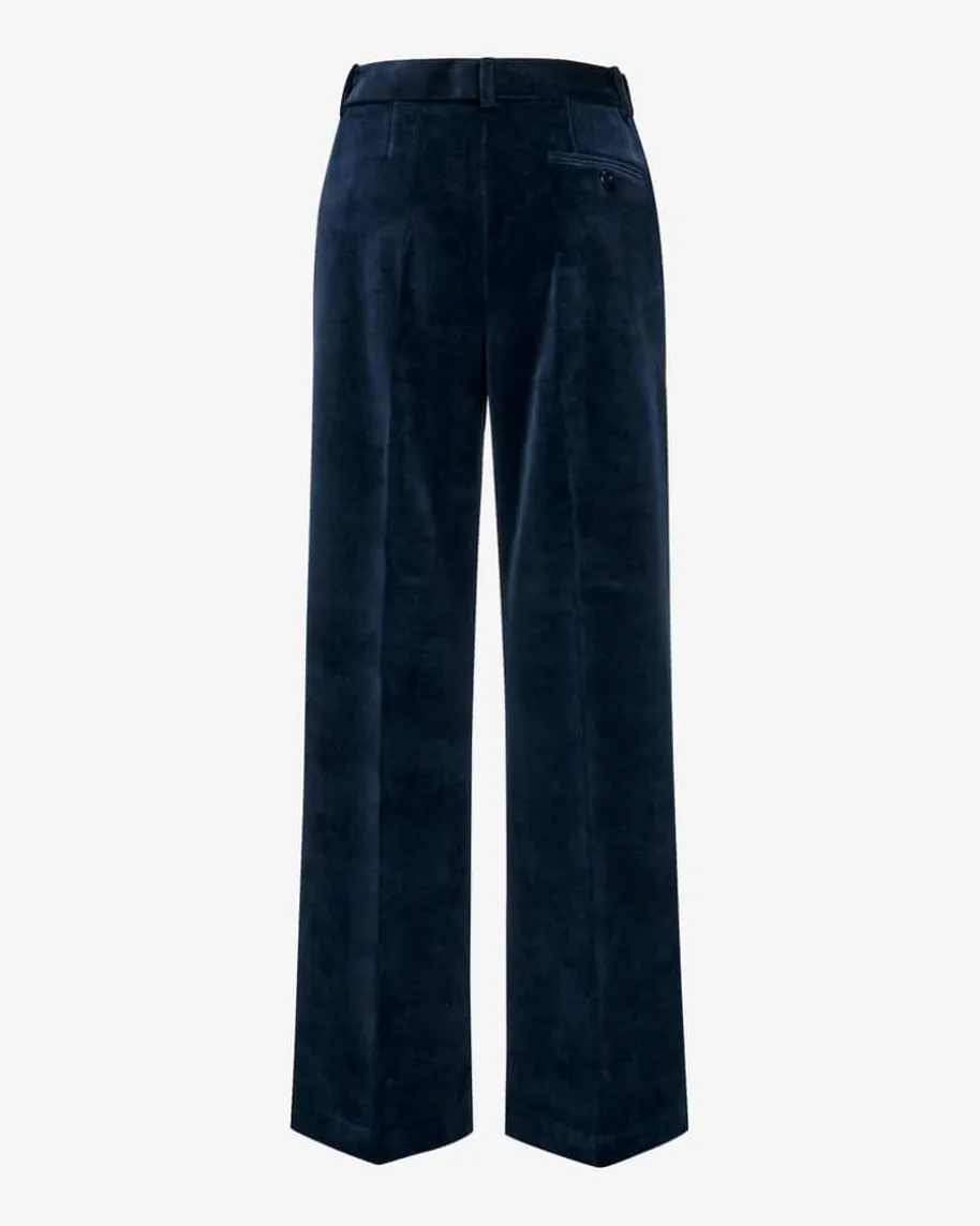 Samthose für Damen von Circolo 1901 in Navy. Das Modell mit weitem Bein undhohem Bund präsentiert sich in weicher Samt-Qualität, welche sowohl haptisch alsauch optisch überzeugt und zusammen mit dem passenden Blazer im femininen Power-Look erstrahlt.