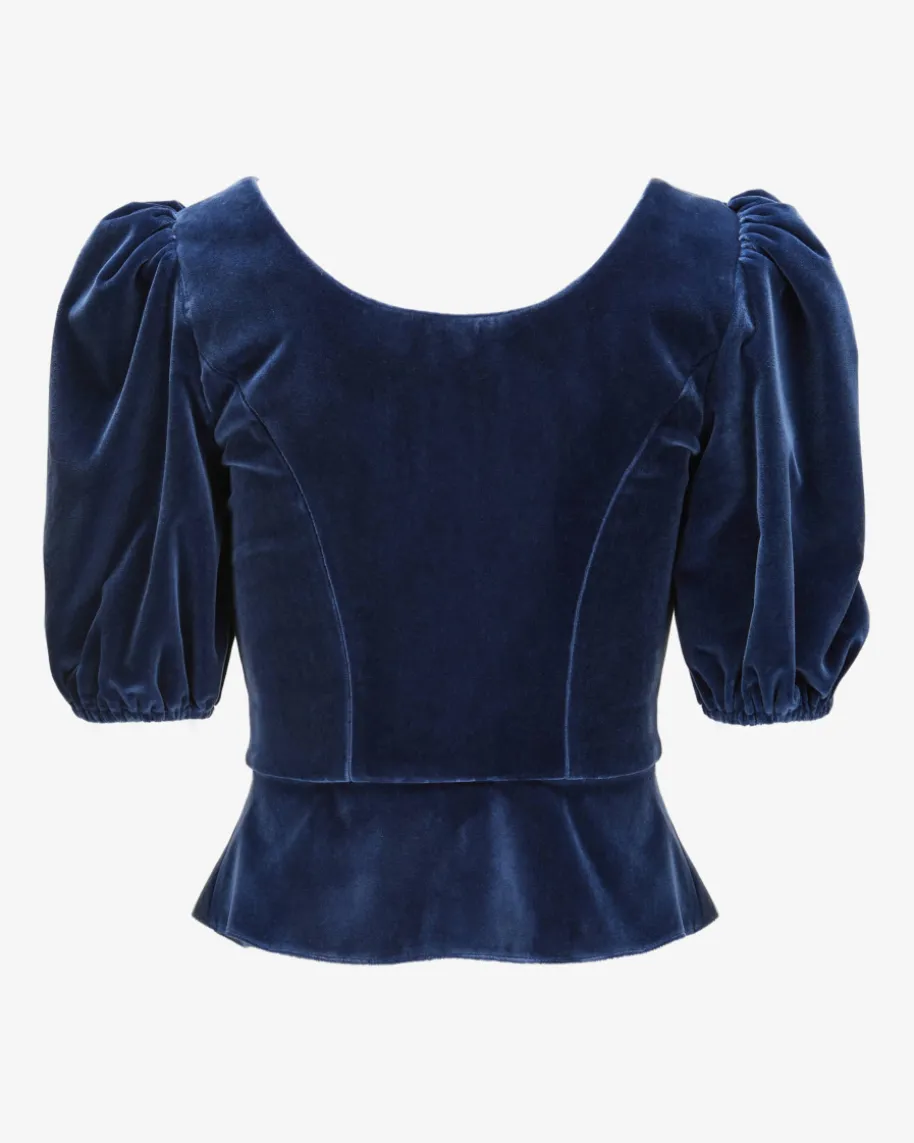 Samtmieder für Damen von Annina in Navy. Das taillierte Modell besticht dank derweichen Samt-Qualität mit weichem Griff und als optisches Highlight, währendtraditionelle Details einen festlichen Begleiter kreiert. – egal ob kombiniertzum femininen Rock oder zur rustikalen Lederhose.