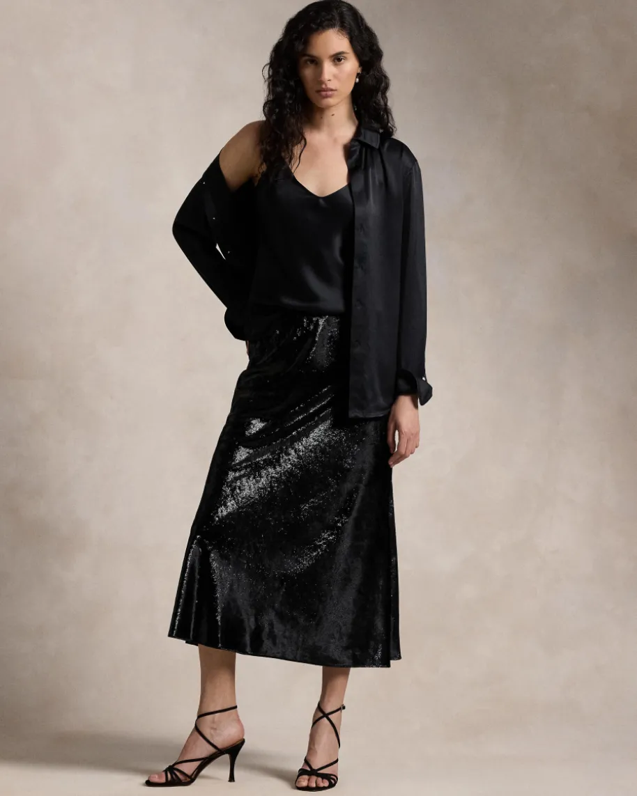 Samtrock für Damen von Polo Ralph Lauren in Schwarz. Das Modell avanciert dankder changierenden Samt-Verarbeitung zum modischen Blickfang, während die modernePassform einen eleganten Favoriten mit femininem Charme kreiert. Der schmaleelastische Bund sorgt für angenehmen Tragekomfort und rundet den Look gekonntab.