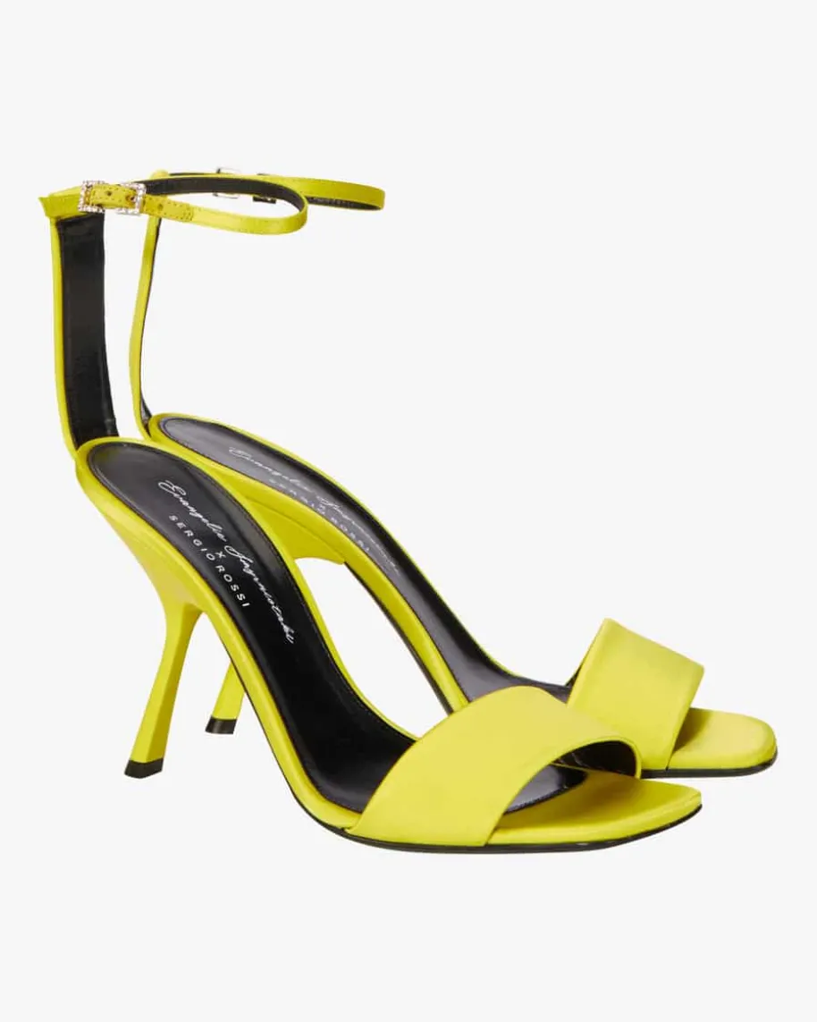 Sandaletten für Damen von Sergio Rossi in Gelb. Dank der Verwendung vonchangierendem Textil erhält das Modell einen klassischen und zugleichextravaganten Look. Der Glitzerstein-Besatz entlang der Dornschließe verleihtden letzten Schliff.
