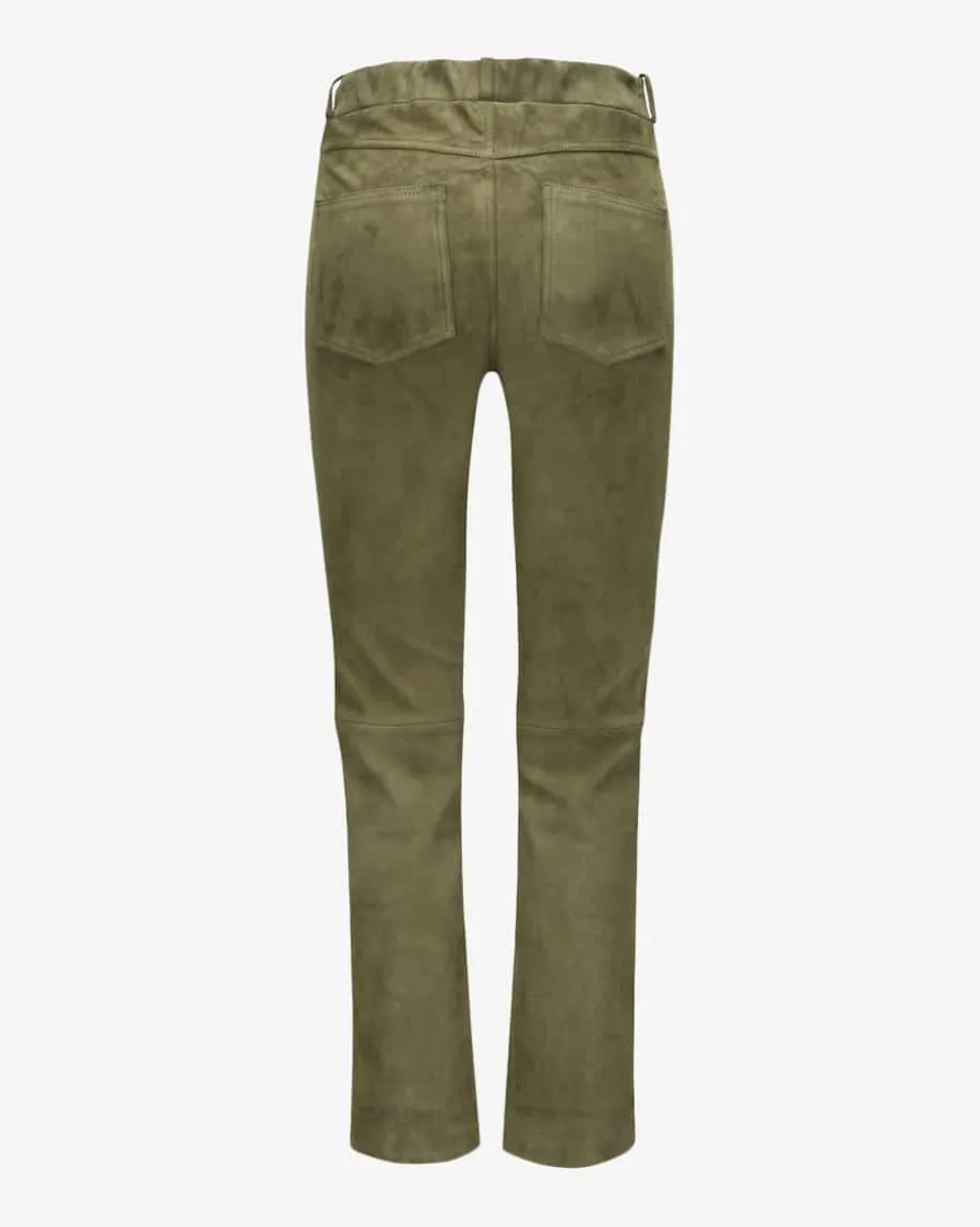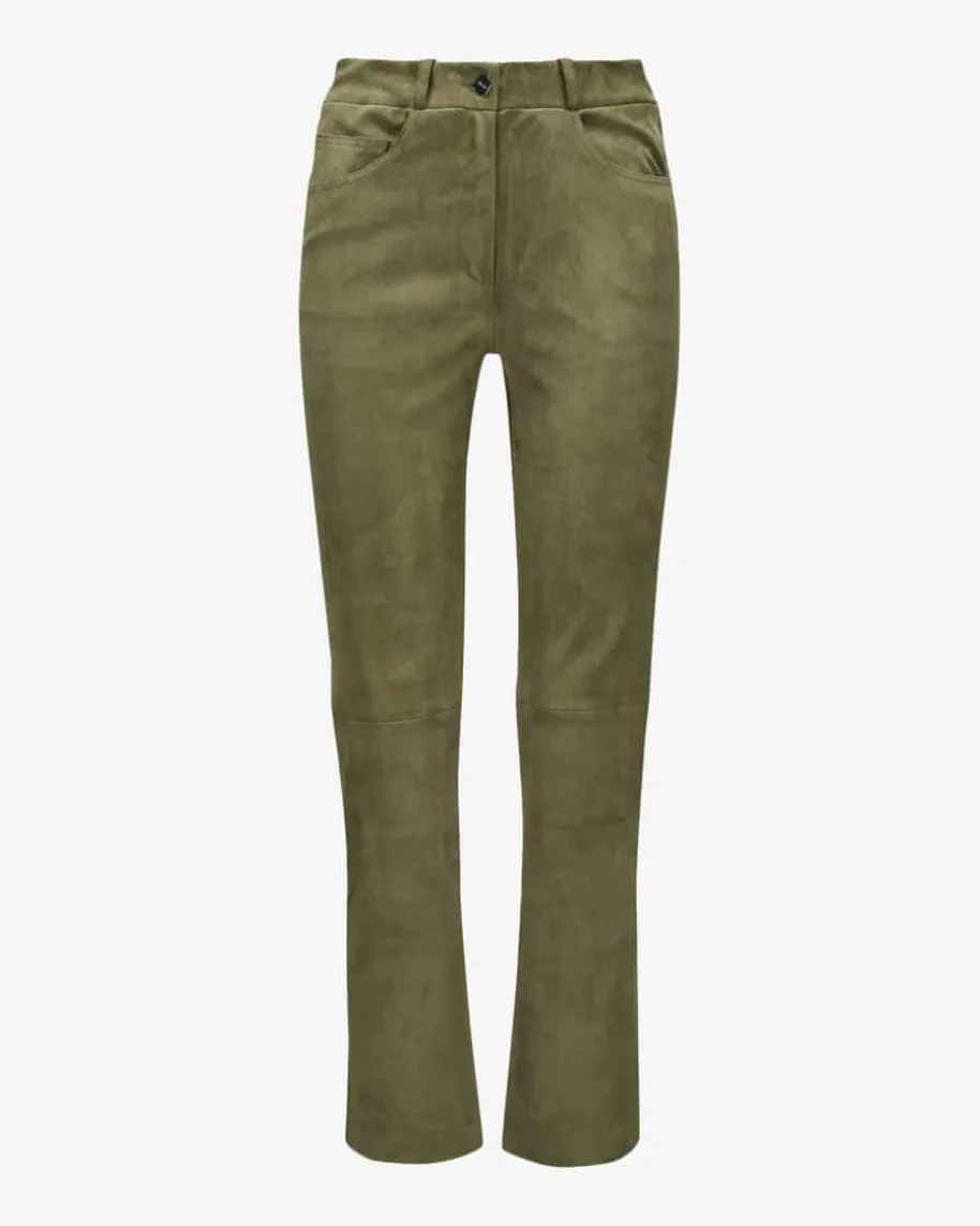 Sarjevo 7/8-Lederhose für Damen von Arma in Moosgrün. Das Modell überzeugtdank der hochwertigen Velourleder-Qualität mit angenehmen Tragemomenten, währendklassische Details einen vielseitigen Begleiter für modische Looks kreiert.