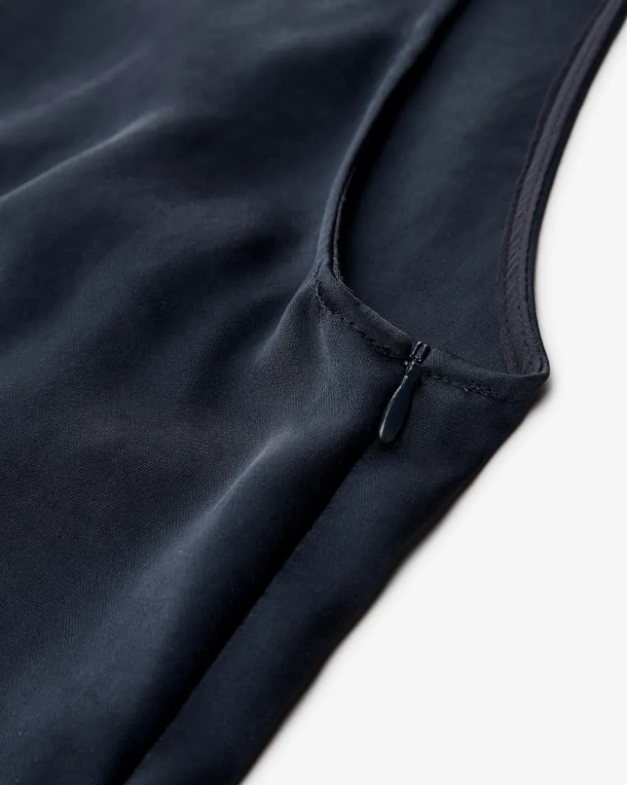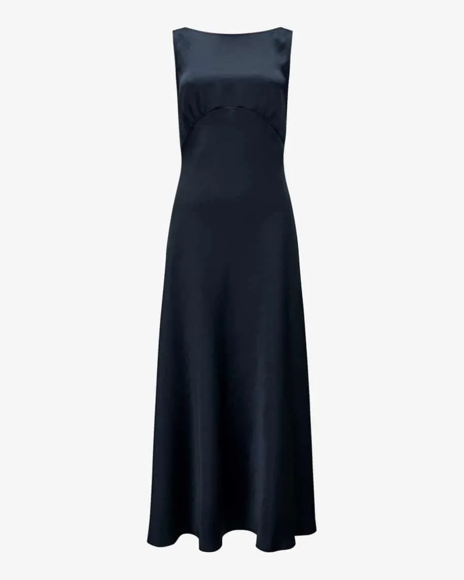 Satinkleid für Damen von Luisa Cerano in Navy. Das Modell präsentiert sich mitedel changierender Satin-Qualität, während der taillierte Schnitt mit Abnähernden Look feminin inszeniert – Ein stilvoller Favorit für vielseitige Anlässe.