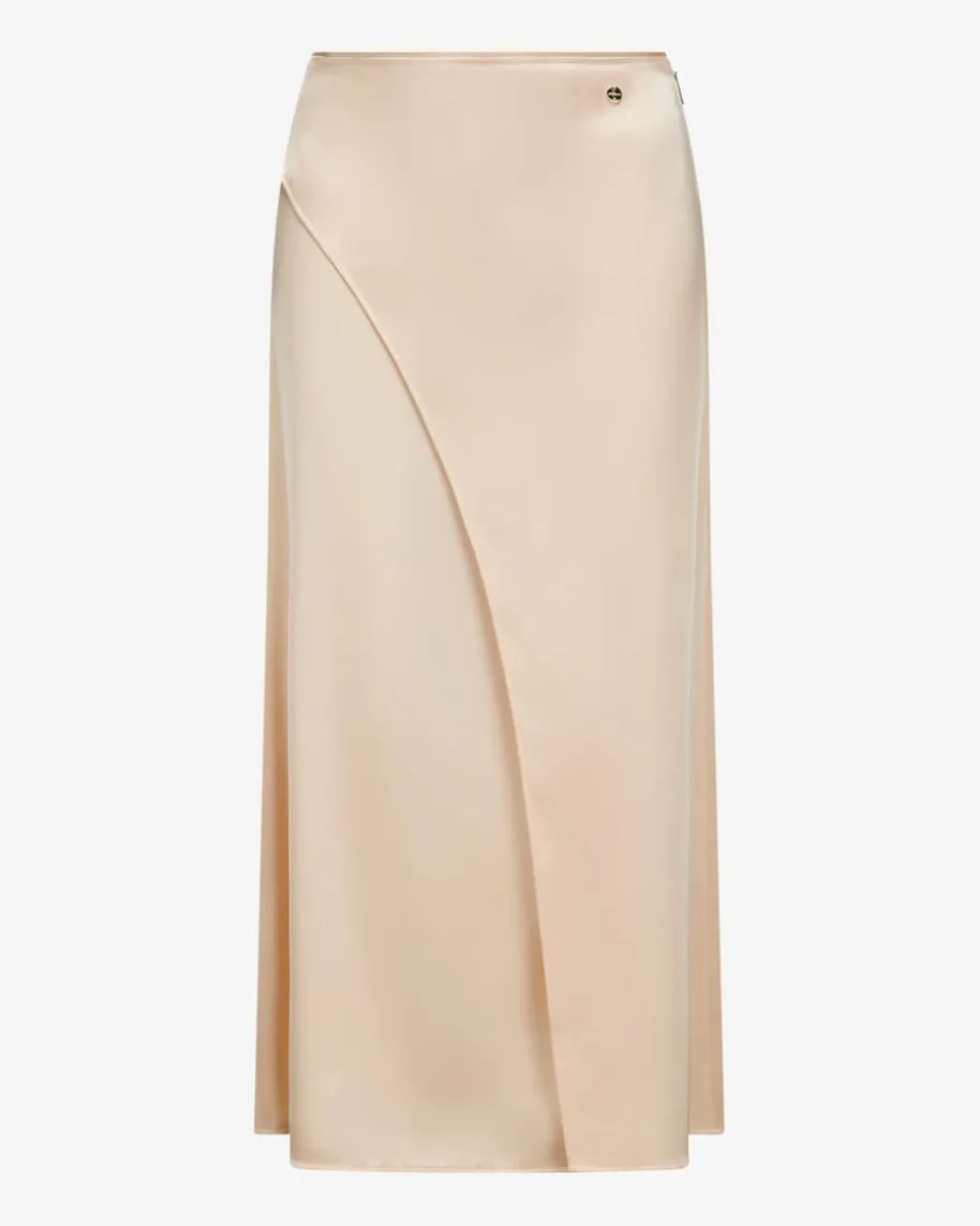 Satinrock für Damen von Marc Cain in Sand. Marc Cain ist eine deutsche Premium-Modemarke, die seit über 50 Jahren moderne, selbstbewusste Frauen mithochwertigen Materialien und außergewöhnlichen Prints begeistert. Auch diesesfließende Modell überzeugt mit changierendem Satin und überzeugt in Wickel-Optik– perfekt für stilbewusste Damen mit Sinn für Trends.