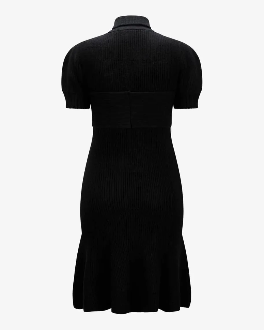 Scarf Drapped Strickkleid für Damen von Patou in Schwarz. Für besondereWohlfühl-Momente sorgt das Modell aus weichem Merinowolle-Cashmere-Mix mitmarkantem Perlfang-Strickmuster. Die schmale Passform in Kombination mit demausgestellten Rock und raffiniertem überkreuztem Schalkragen betont die Tailleund zaubert eine feminine Silhouette.