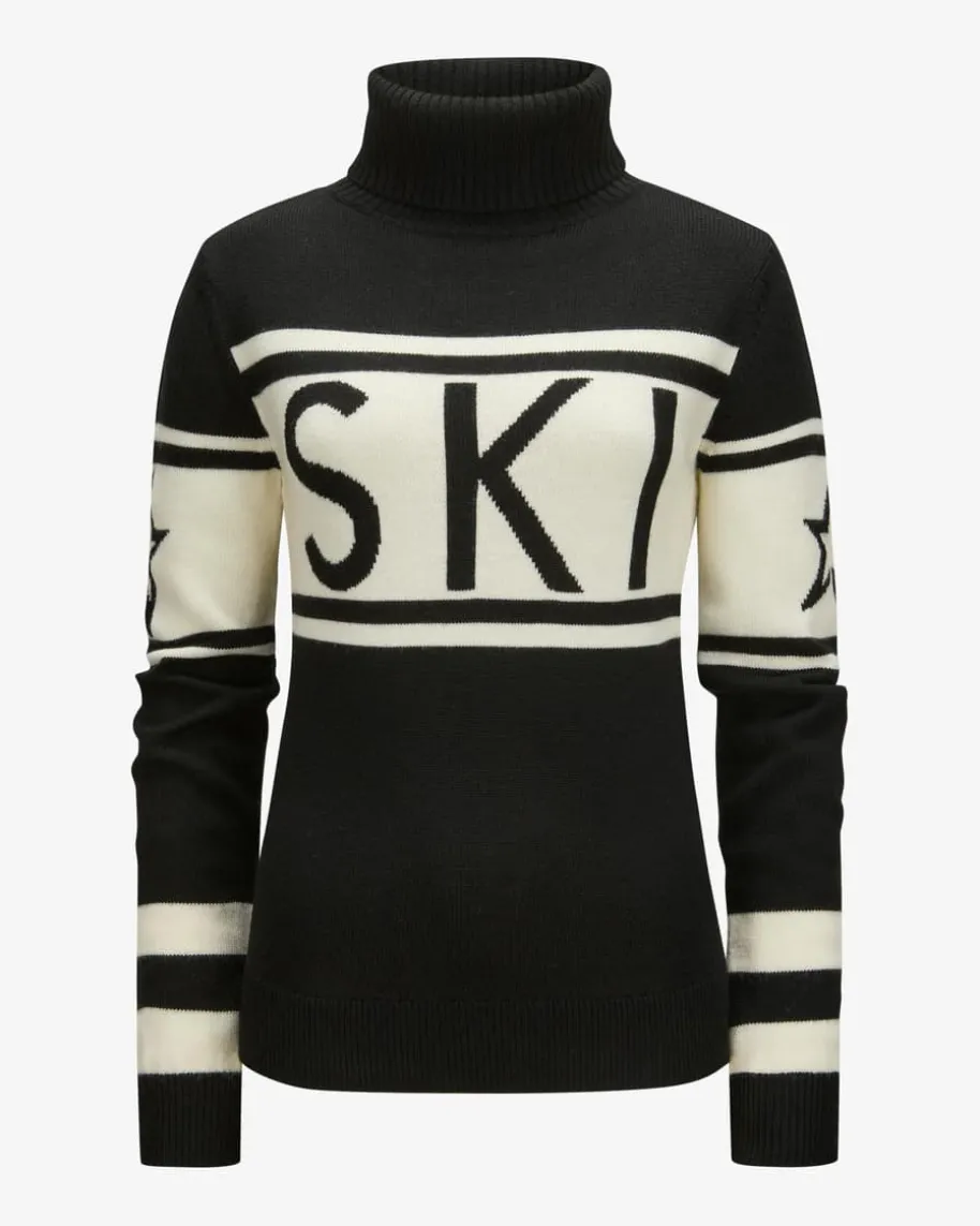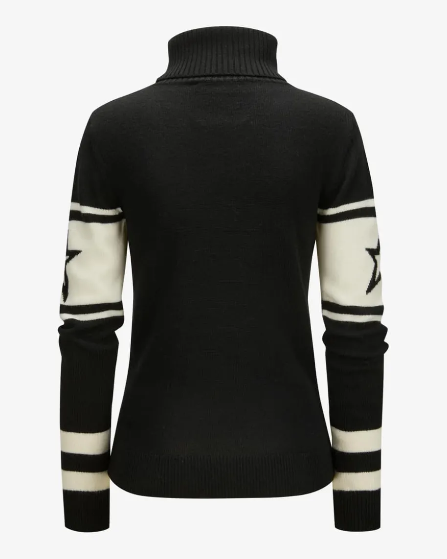 Schild Rollkragenpullover für Damen von Perfect Moment in Schwarz und Weiß. Fürgeschmackvolle Après-Ski-Looks – Während die hochwertige Merinowolle für einenbesonders weichen Griff sorgt, kreiert das zeitlose Design mit kontrastierenderIntarsie einen stilvollen Winter- oder Pisten-Begleiter.