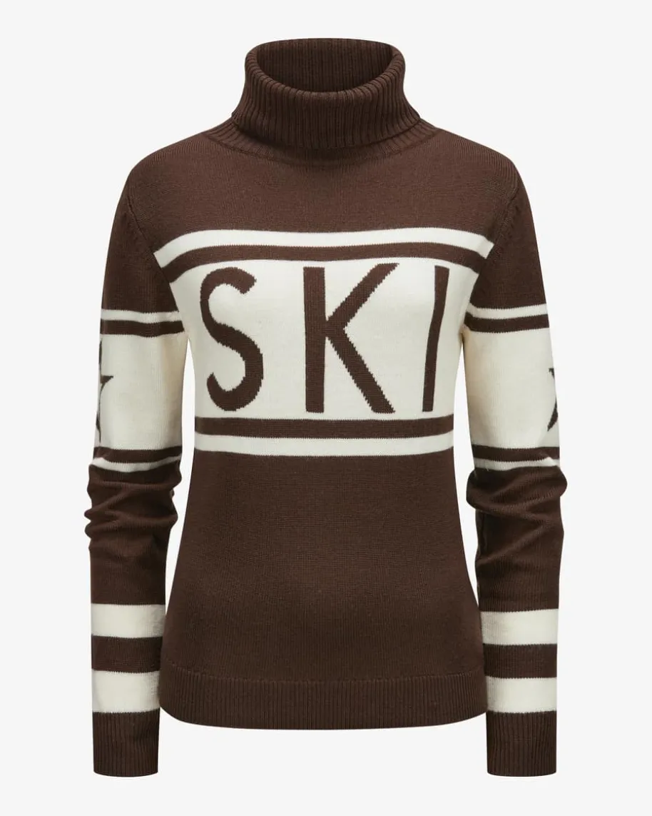 Schild Rollkragenpullover für Damen von Perfect Moment in Braun und Off-White.Fürgeschmackvolle Après-Ski-Looks – Während die hochwertige Merinowolle für einenbesonders weichen Griff sorgt, kreiert das zeitlose Design mit kontrastierenderIntarsie einen stilvollen Winter- oder Pisten-Begleiter.