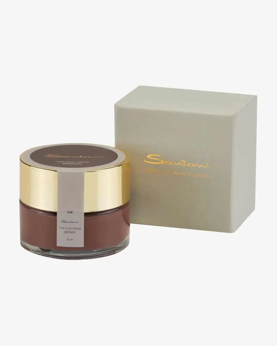 Schuhcreme von Santoni in Braun. Die richtige Pflege ist dasGeheimnis zeitloserSchönheit – Ergänzen Sie Ihre Schuhpflege mit der farblich-perfekten Schuhcremeauf der Basis von Carnaubawachs und Bienenwachs. Diese istideal für diesachgemäße Pflege, Reinigung und der Farbauffrischung IhrerSantoni-Schuhe,damit Sie auch bei langer Nutzung weich und glänzendbleiben. Das Produkt wirdper Schwamm oder weichen Tuch auf das Oberleder aufgetragen,das anschließendmit einem sauberen Tuch poliert wird. Sie sollten es nichtauf Wildleder oderLackleder anwenden.