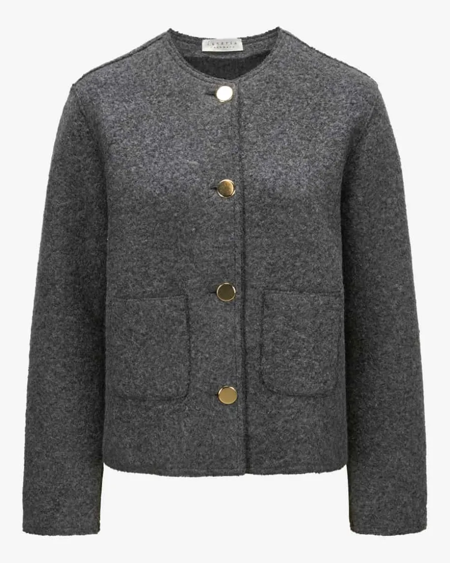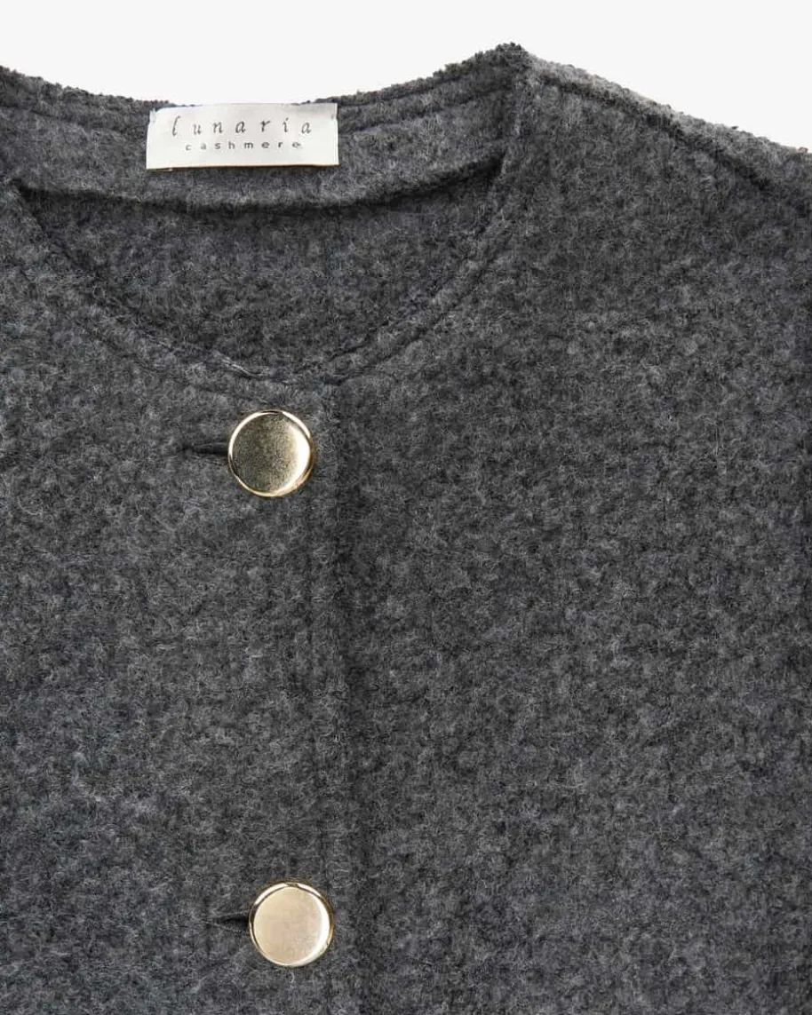 Seiden-Cashmerejacke für Damen von Lunaria in Grau. Das Modell punktet dank derhochwertigen Seiden-Cashmere-Qualität mit einer angenehmen Haptik, währendklassische Details einen perfekten Begleiter für die Übergangszeit schaffen.