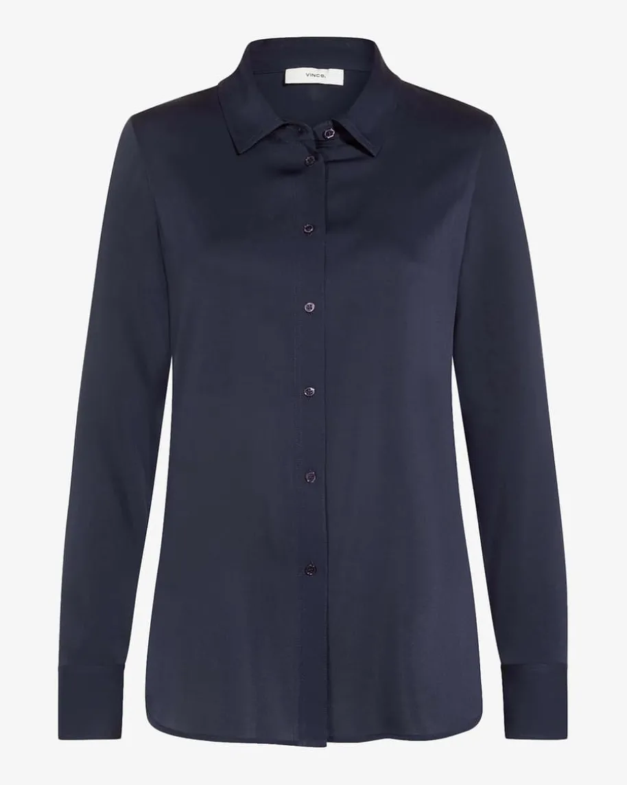 Seidenbluse für Damen von Vince in Navy. Die fließende, elastische Seiden-Qualität sorgt für eine perfekte Passform, während klassische Details dasstilvolle Modell gekonnt abrunden.