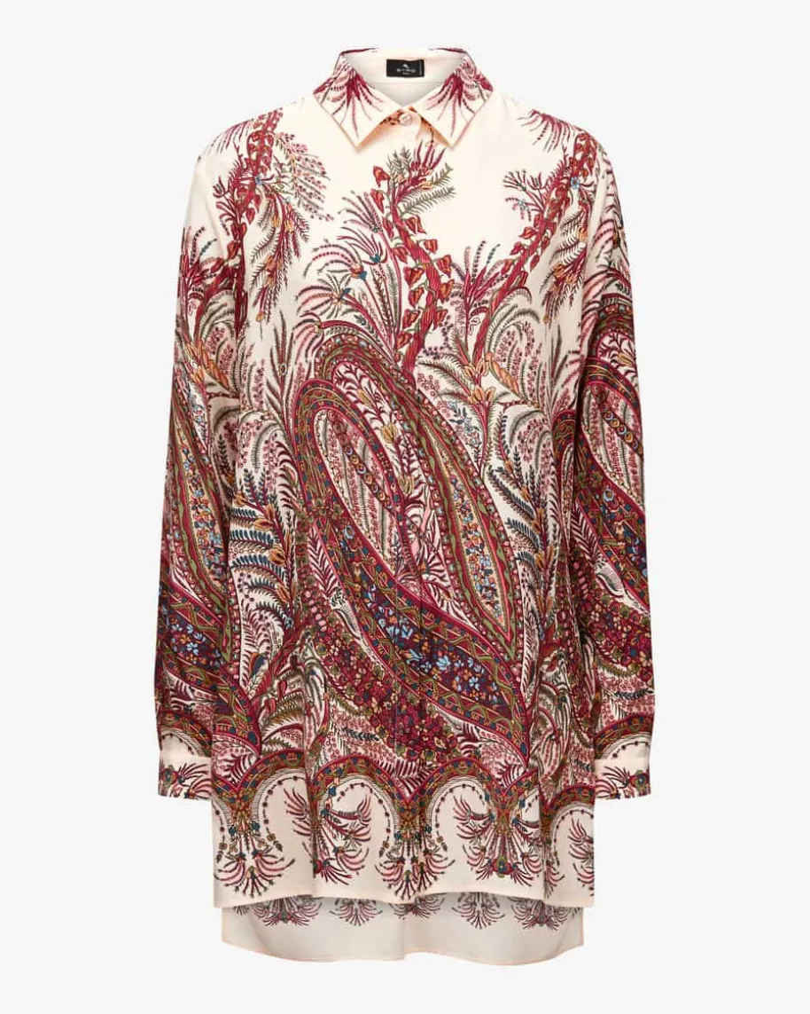 Seidenbluse für Damen von Etro in Ecru und Bunt. Das lang geschnittene Modellüberzeugt mit labeltypischem Paisley-Dessin sowie edler Seiden-Qualität undavanciert so zum modischen Blickfang.