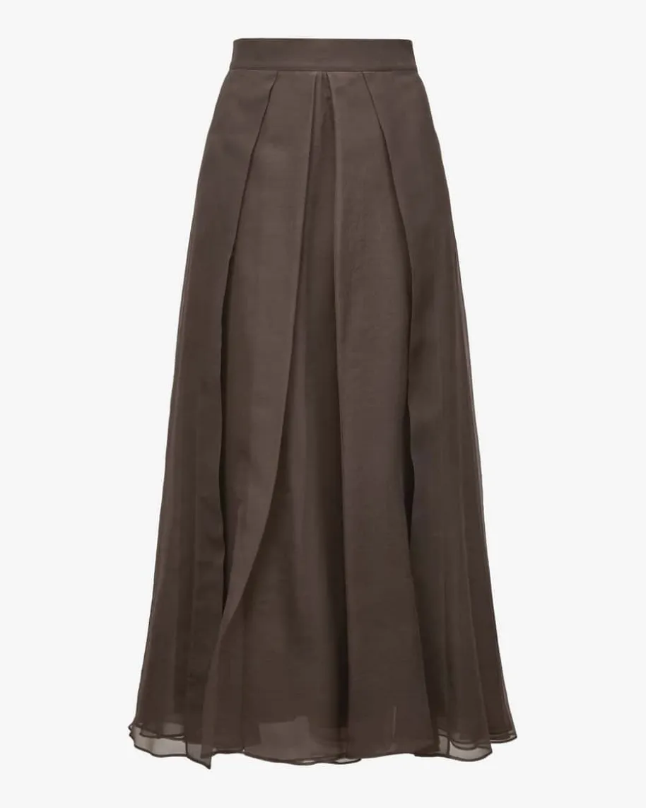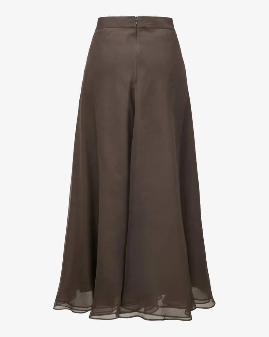 Seidenrock für Damen von Brunello Cucinelli in Dunkelbraun. Während die semi-transparente Seiden-Qualität in stilvoll drapiertem Design für eine edle Notesorgt, kreiert der blickdichte Unterrock eine modische Lagenlook-Ästhetik imMaxi-Style.