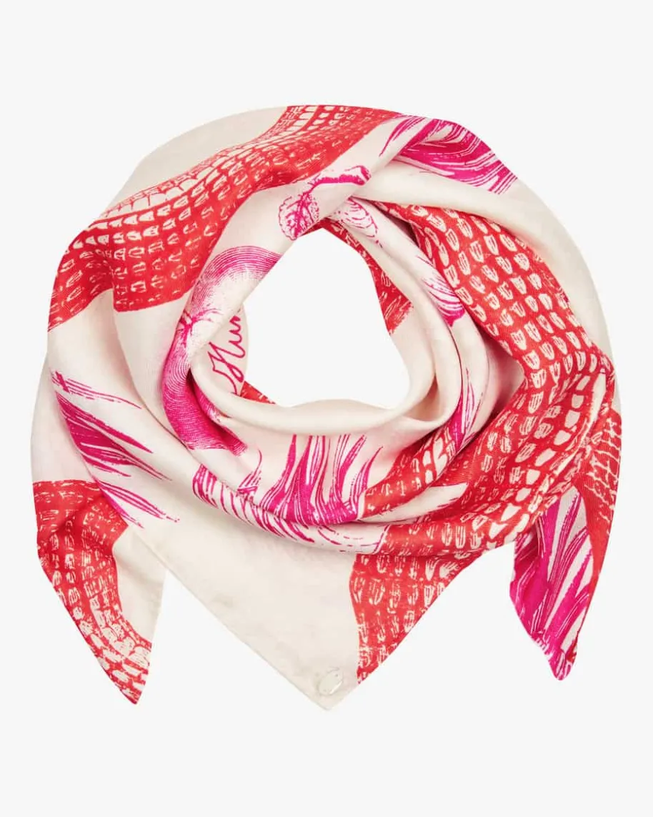 Seidentuch für Damen von Friendly Hunting in Creme, Rot und Pink. Dankhochwertiger Seiden-Qualität überzeugt dieses Modell sowohl haptisch als auchoptisch, während der Allover-Print modische Akzente setzt.
