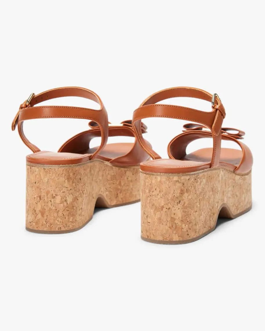 Selna Sandaletten für Damen von Ferragamo in Cognac. Ein sommerliches Highlightmit eleganter Note – Das Modell zeichnet sich durch die raffinierte Kombinationaus hochwertiger Lammleder-Verarbeitung und dem Kork-Plateauabsatz imoriginellen Wedges-Stil aus, welche durch die tonale Schleifen-Akzente stilvollin Szene gesetzt wird.