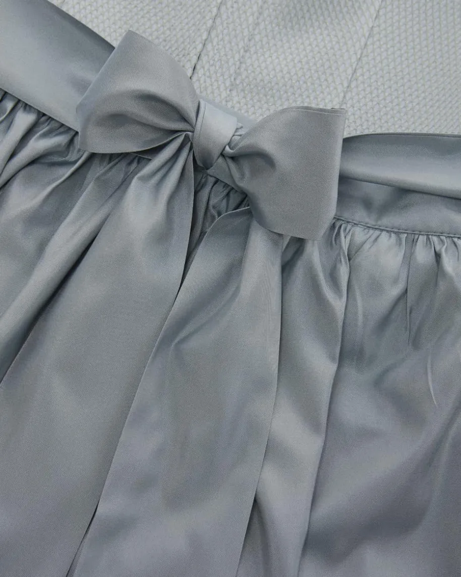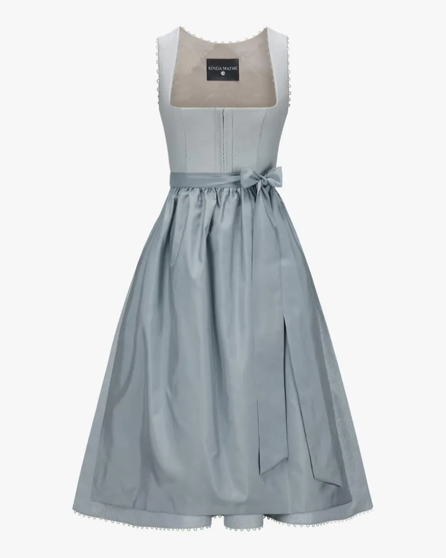 Sezann Midi-Dirndl mit Schürze für Damen von Kinga Mathe in Eisblau. Mit Liebezum Detail entwirft das deutsche Label aufwendige Trachten-Kreationen mit demgewissen Etwas und überzeugt mit erlesener Stoffauswahl sowie kreative Designs.Das Modell überzeugt mit strukturiertem Mieder und feinen Zierborten, währendder Unterrock mit Volants-Saum eine feminine Passform verleiht. Die dezentchangierende Schürze aus Seiden-Mix komplettiert den Jaquard-Rock harmonisch.