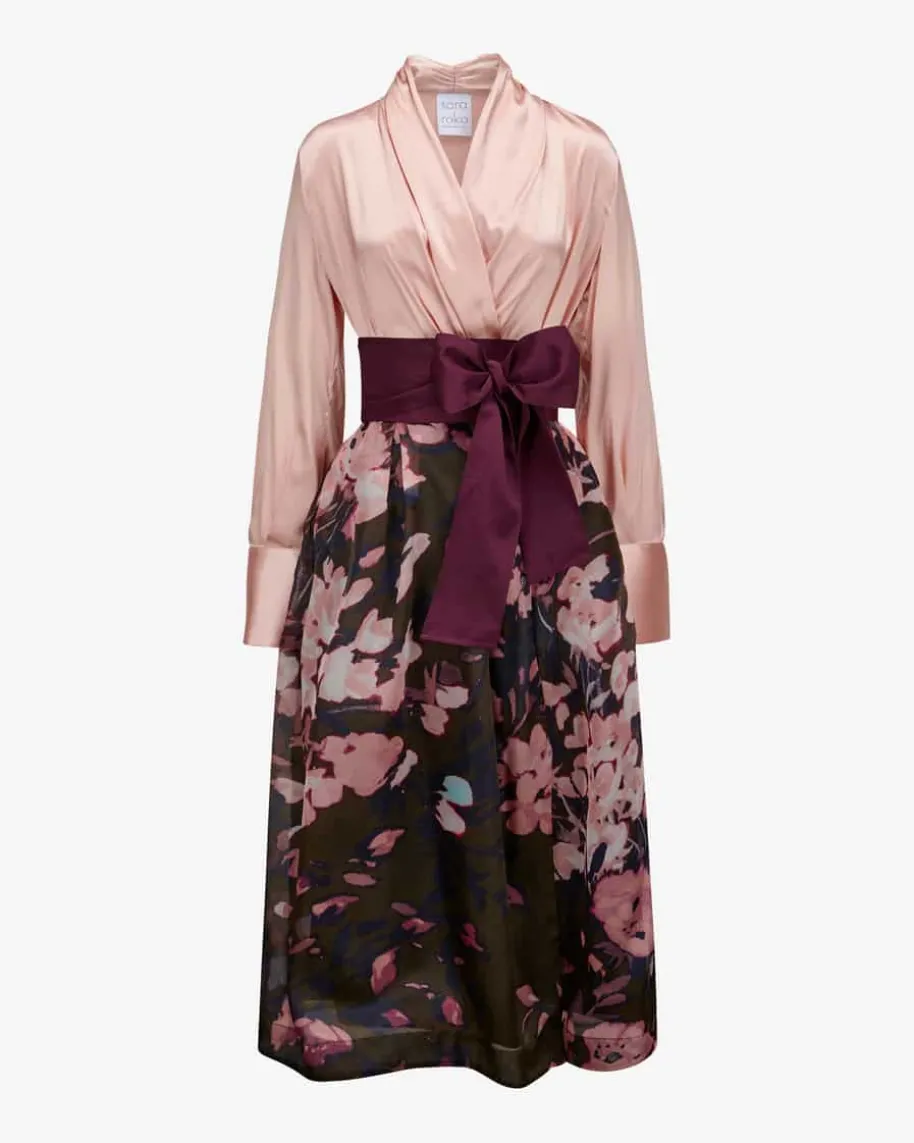 Sharetta Kleid für Damen von Sara Roka in Rosa, Bordeaux und Oliv. FeminineDesigns mit dem gewissen Etwas. Der Ursprung der Kollektionen findet sich imklassischen Herren-Hemd wieder, von dem die typischen Blusenkleider inspiriertsind. Auch dieses Modell präsentiert sich in raffinierter Material-Kombinationmit changierendem Blusen-Oberteil. Der floral gemusterte Rock und das abnehmbareTaillenband zaubern eine feminine Silhouette und runden den Look in Wickel-Optikgekonnt ab.