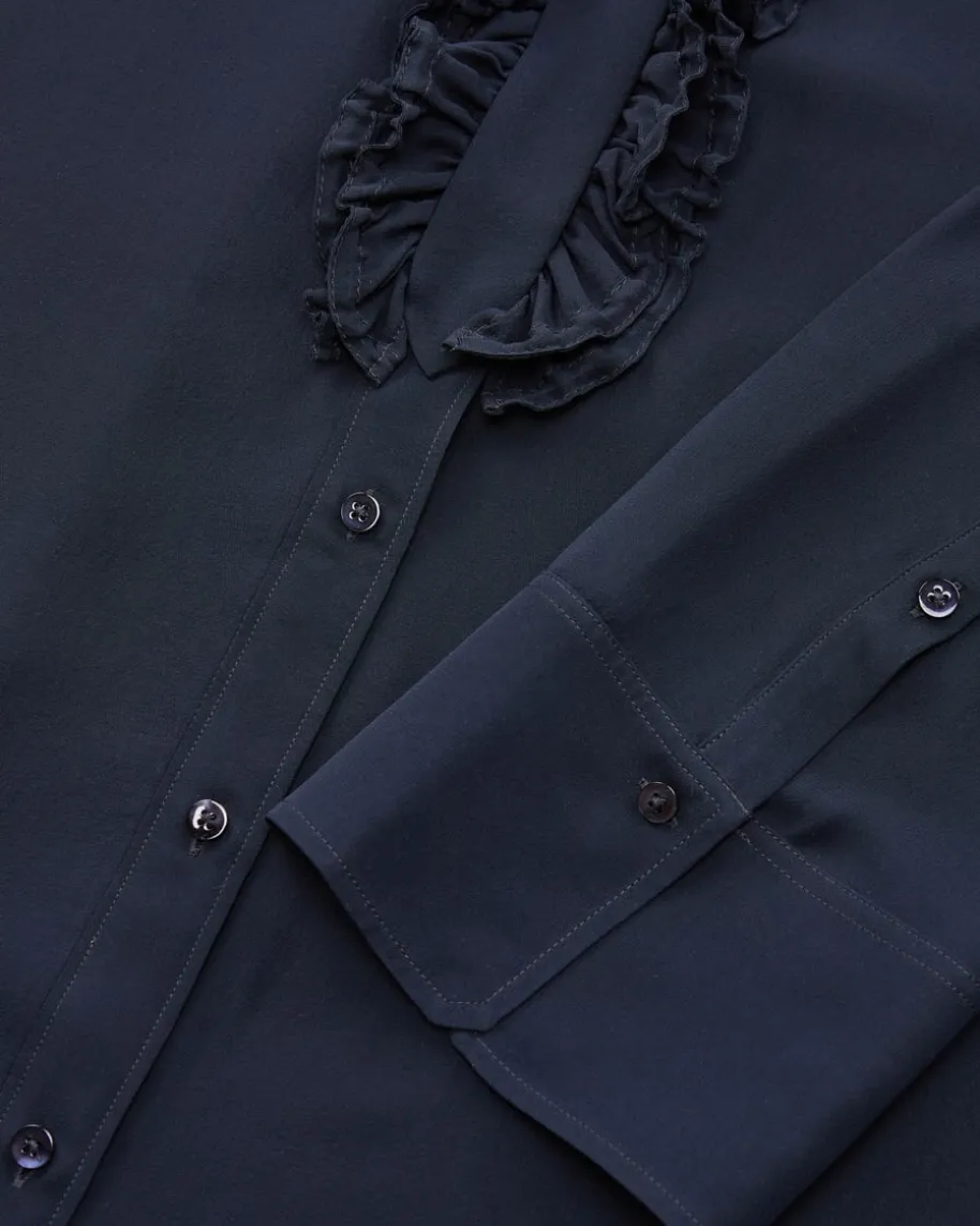 Sheer Dreams Seidenbluse für Damen von Dorothee Schumacher in Navy. Das Modellbesticht dank der hochwertigen Seiden-Qualität mit einer einzigartigen Haptikund semitransparenter Optik. Modische Akzente werden durch klassische Detailssowie Raffungen an der Knopfleiste verliehen.
