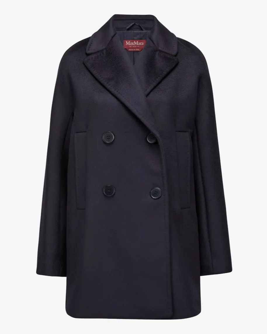 Sheree Caban-Wolljacke für Damen von Max Mara Studio in Navy. Das Modellüberzeugt dank der hochwertigen Pure New Wool Schurwoll-Qualität mit einerbesonders weichen Haptik, während die klassische Cabanjacken-Aufmachung einenstilvollen Begleiter für die Übergangszeit schafft.
