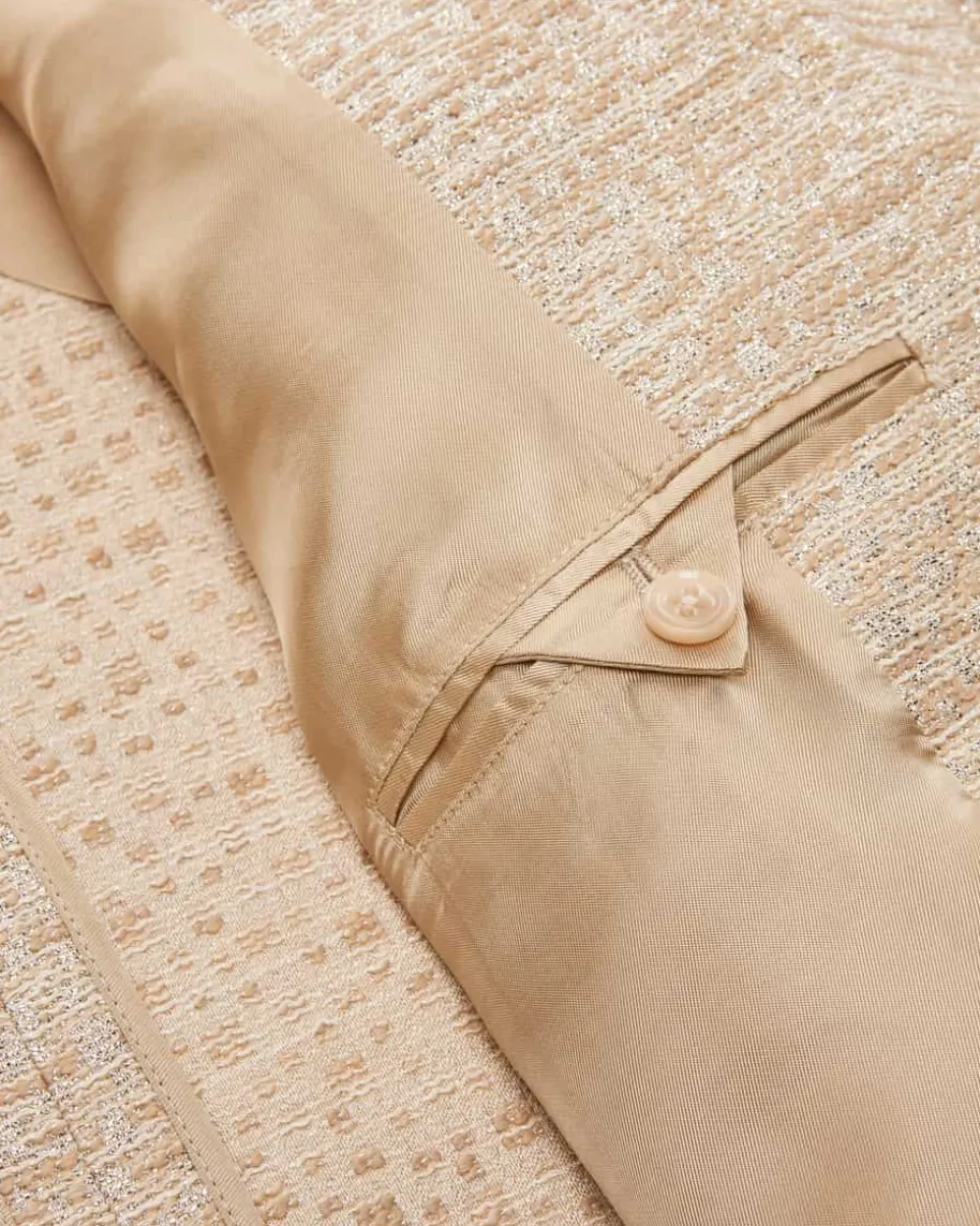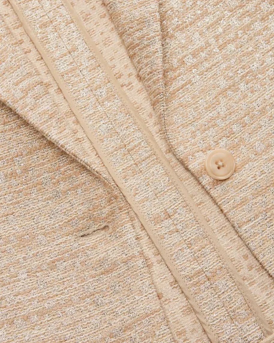Shiny Coolness Blazer für Damen von Dorothee Schumacher in Gold. Das Modellüberzeugt mit weiter Passform, die legere Akzente setzt, während die glitzerndeAufmachung einen modischen Look kreiert. Die verkürzten Ärmel runden dasGesamtbild harmonisch ab.