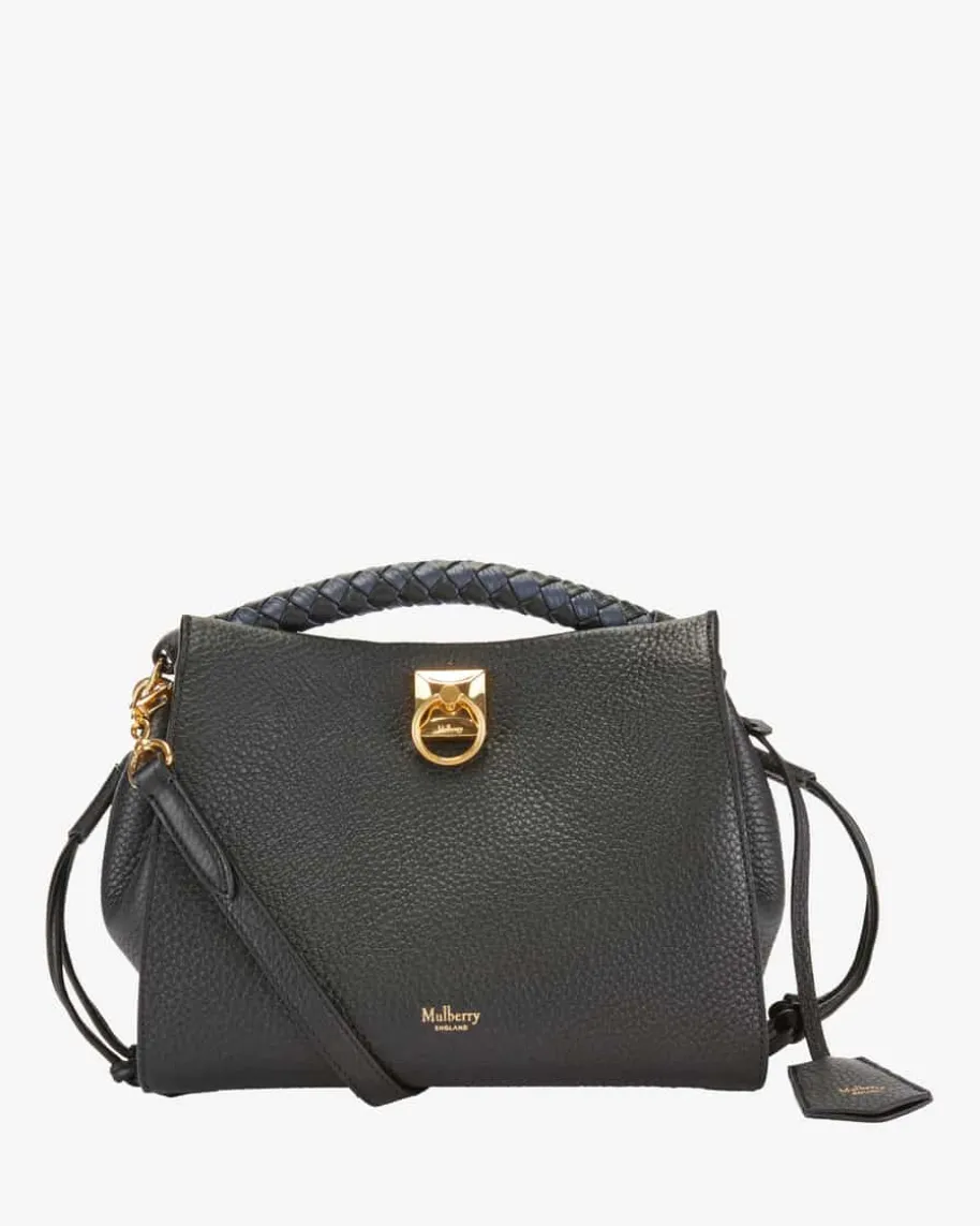 Small Iris Henkeltasche für Damen von Mulberry in Schwarz. Das Modell aushochwertig genarbter Leder-Qualität avanciert dank luxuriöser Aufmachung zumstilvollen Accessoire für modische Looks. Goldene Details sowie der raffinierteHenkel in Flecht-Optik komplettieren das edle Gesamtbild gekonnt.