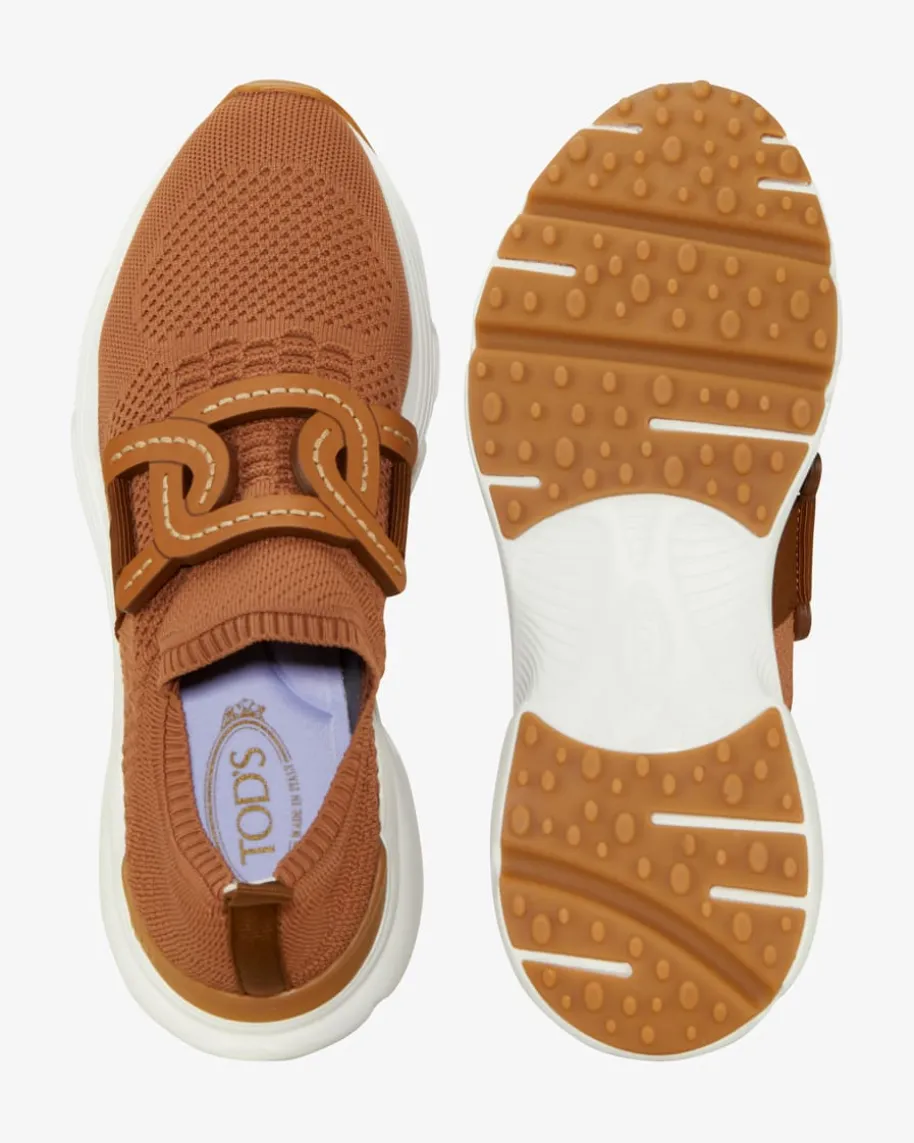 Sneaker für Damen von Tod‘s in Hellbraun und Weiß. Dank der Strick-Qualitätpräsentiert sich das sportive Modell in extravaganter Aufmachung, während tonaleLeder-Details das Gesamtbild stilvoll abrunden.