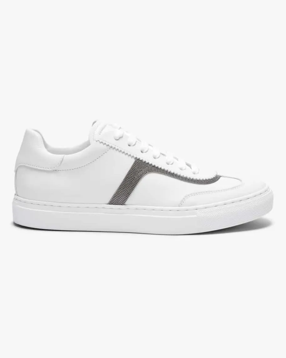 Sneaker für Damen von Brunello Cucinelli in Weiß. Gefertigt aus hochwertigemGlattleder besticht das Modell als modischer Favorit, während die Kombinationaus sportivem Design und changierenden Schmuckketten ein harmonisches Gesamtbildkreieren.