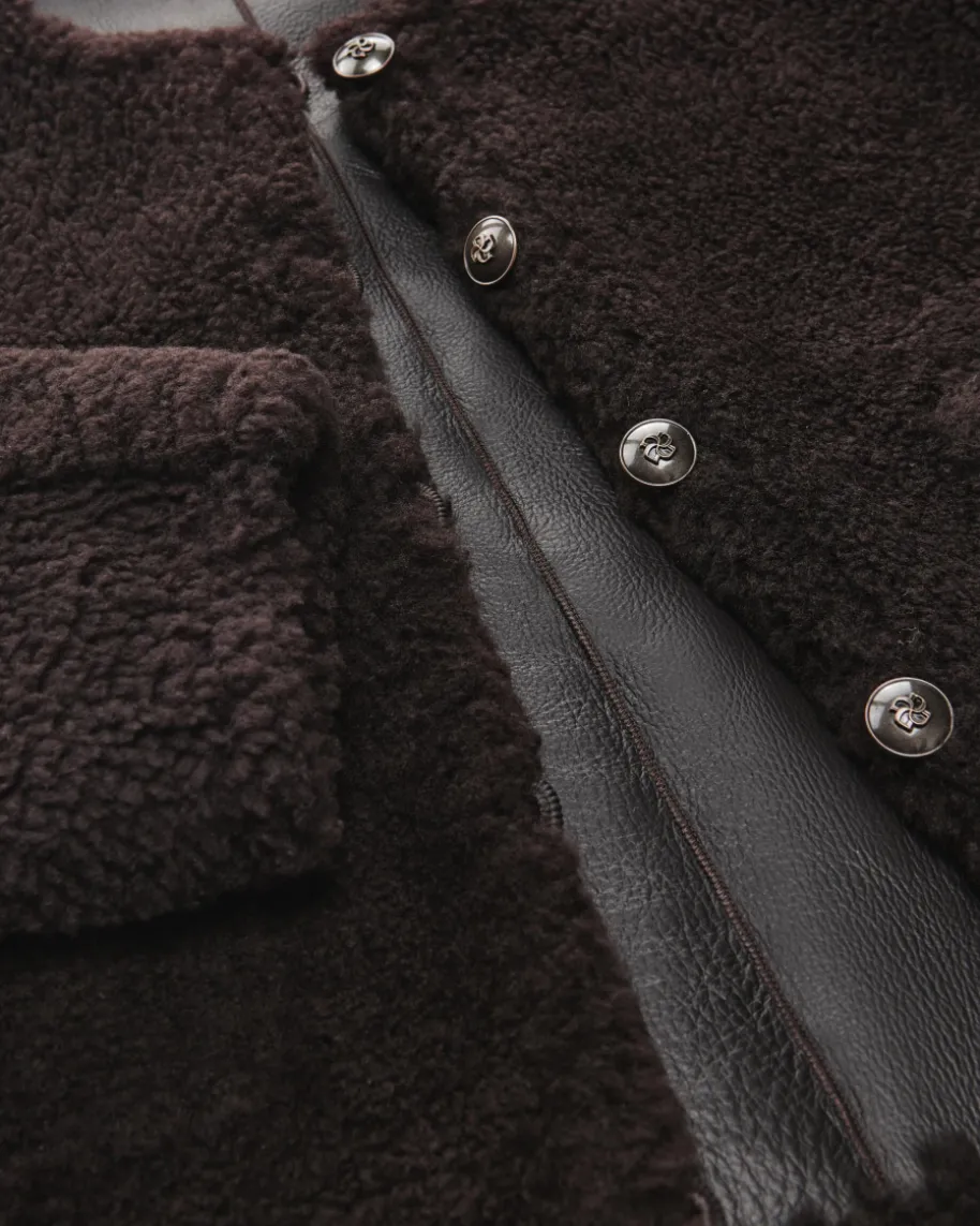 Soft Touch Wende-Lammfelljacke für Damen von Dorothee Schumacher in DarkChocolate. Feminine Power aus Deutschland – Dorothees Looks verbinden Stärke mitverspielter Eleganz. Auch dieses Modell in verkürzter Passform überzeugt incleanem Schnitt, während die Wendefunktion in Kombination mit den Logo-Knöpfeneinen modernen Begleiter mit Power-Twist kreiert.