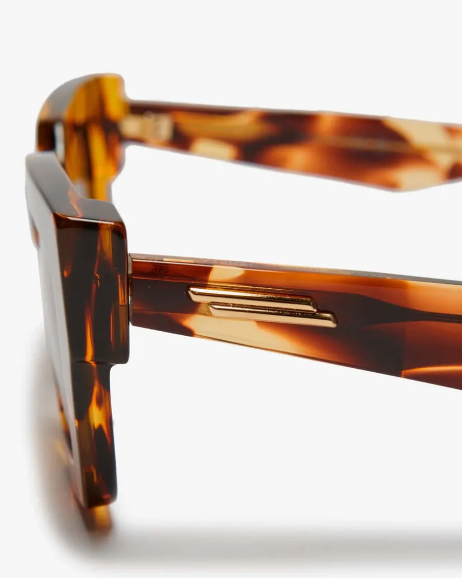 Sonnenbrille für Damen von Bottega Veneta Eyewear in Braun. Dieses Modellavanciert dank der einzigartigen Aufmachung zum stilsicheren Accessoire fürheiße Sommertage. Zugleich kreieren goldene Details am Bügel einen besonderenBlickfang.