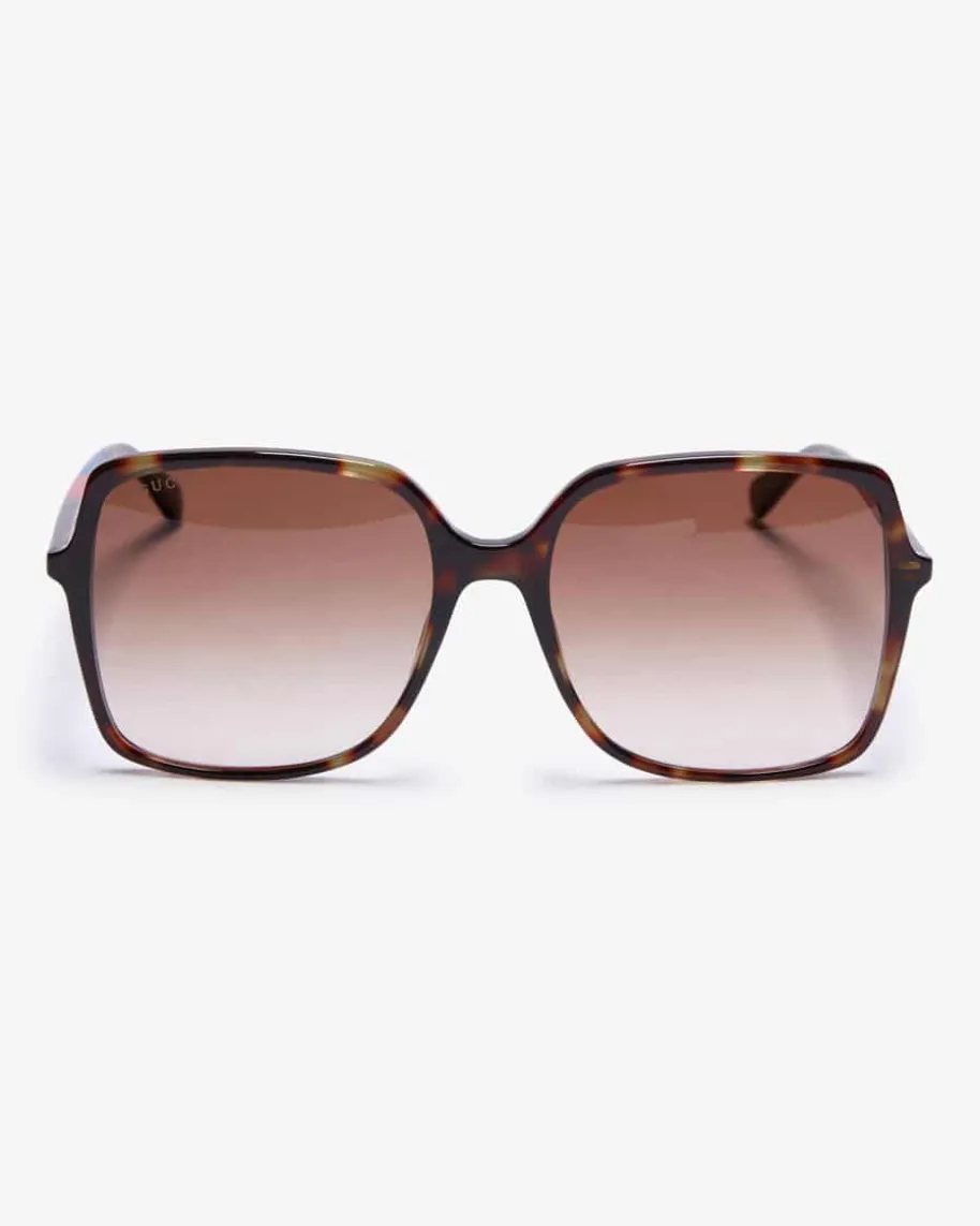 Sonnenbrille für Damen von Gucci Eyewear in Schwarz. Dieses Modell avanciertdank der einzigartigen Aufmachung zum stilsicheren Accessoire für heißeSommertage. Zugleich kreieren goldene Logo-Details am Bügel einen besonderenBlickfang.