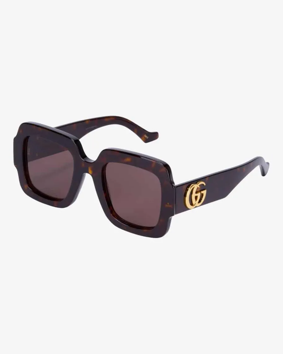 Sonnenbrille für Damen von Gucci Eyewear in Dunkelbraun und Camel. Dank demextravaganten Design mit breitem Rahmen avanciert das große Modell mitabgerundeten Ecken zum perfekten Begleiter für sonnige Tage. Zudem ergänzen diemarkanten, charakteristischen Logo-Details an den Seiten den modisch-elegantenLook gekonnt.