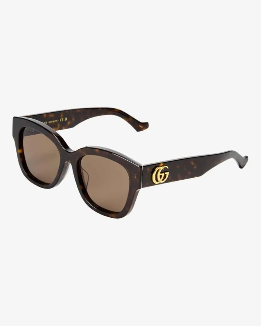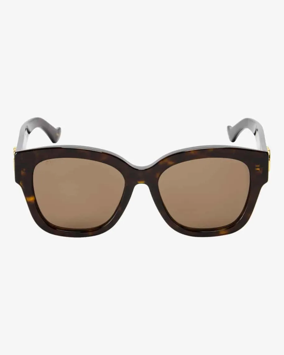 Sonnenbrille für Damen von Gucci Eyewear in Schwarz und Braun. Dank denseitlichen Farb-Akzenten avanciert das runde Modell zum modischen Begleiter fürsonnige Tage. Zudem ergänzen die markanten, charakteristischen Logo-Details denextravaganten Look gekonnt.