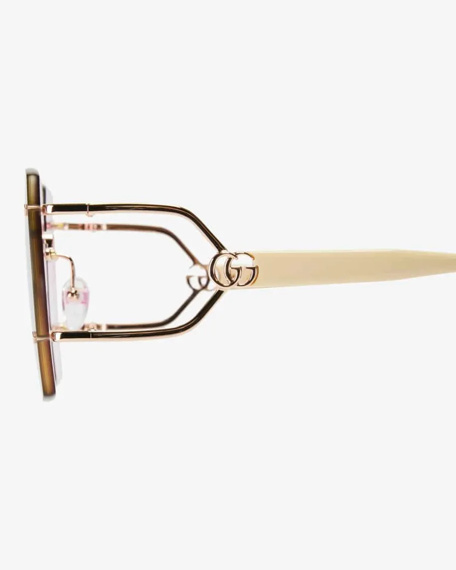 Sonnenbrille für Damen von Gucci Eyewear in Rosa und Roségold. Dankextravaganter Formgebung avanciert das extragroße, rahmenlose Modell zumperfekten Begleiter für sonnige Tage. Zugleich setzt der leichte Farbverlauf inden Gläsern besondere Akzente.