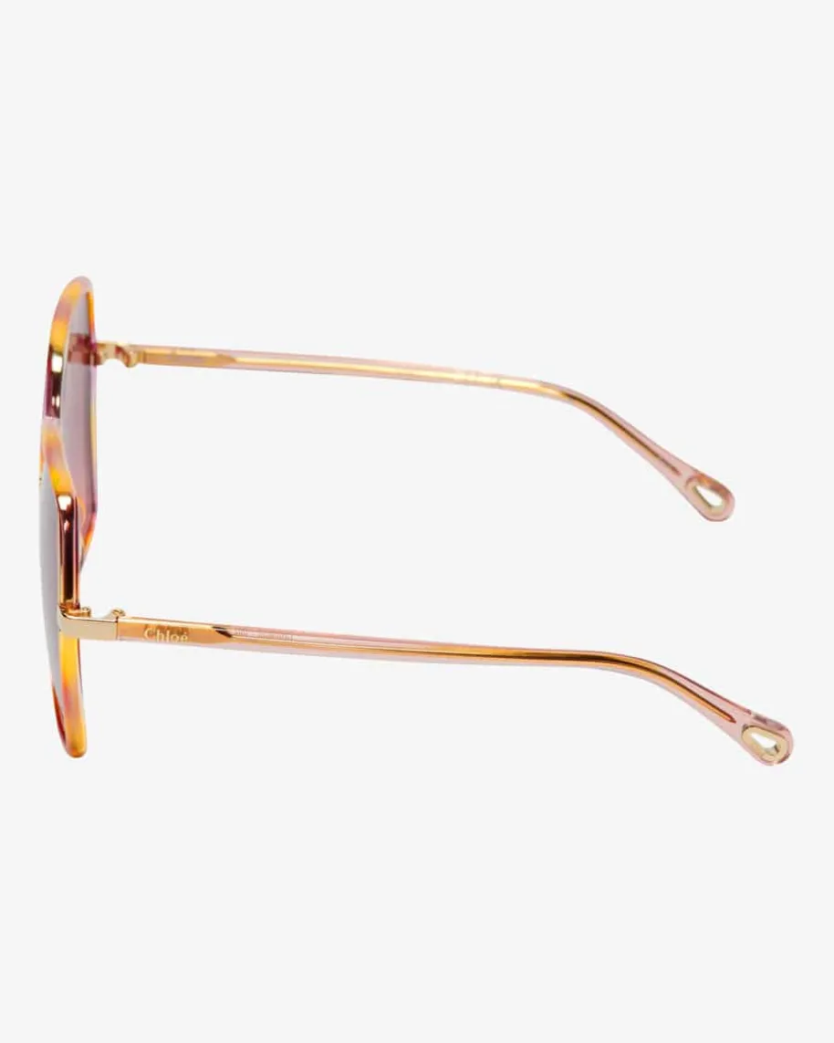 Sonnenbrille für Damen von Chloé Eyewear in Altrosa, Apricot und Rosa. DasModell präsentiert sich mit extravaganten Gläsern und schafft somit einmodisches IT-Piece das nach Sonne ruft. Die goldfarbenen Details runden dasGesamtbild gekonnt ab.