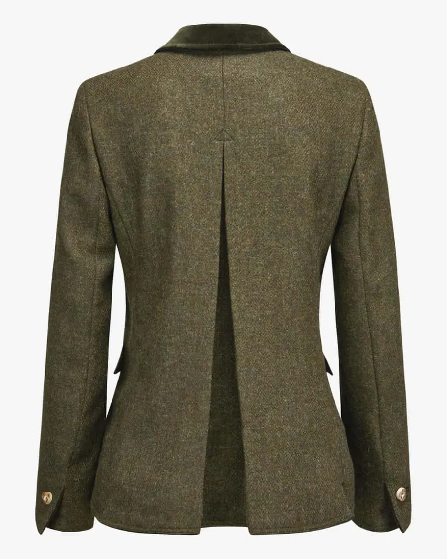 Sophie Trachtenjacke für Damen von Poldi in Dunkeloliv. Das traditionelle Modellwird durch die hochwertige Schurwolle mit Fischgrätmuster gekonnt in Szenegesetzt, während die weichen Samtbesätze ihrem Trachten-Begleiter ein stilvollesFinish verleihen. Zugleich runden geknöpfte Klappentaschen mit markantenHornknöpfen den Look harmonisch ab.