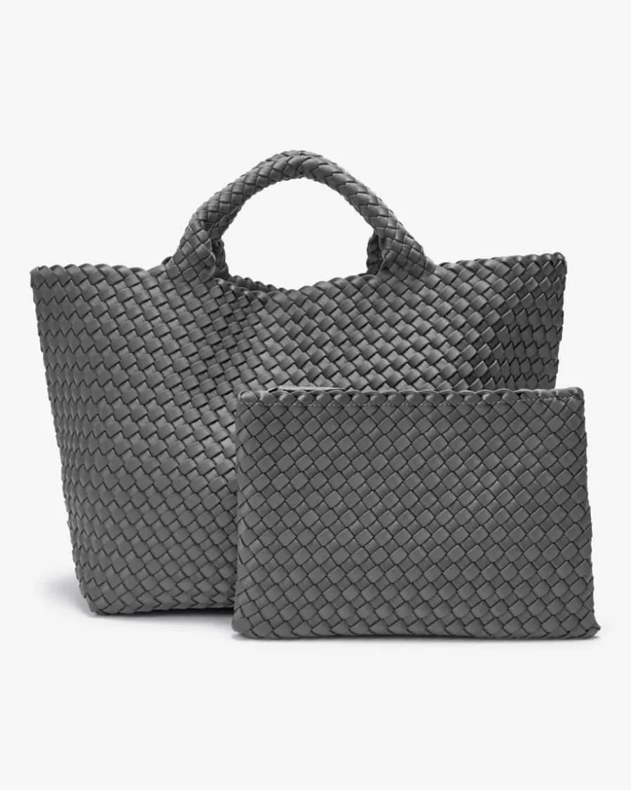 St. Barths Medium Tote Handtasche für Damen von Naghedi in Dunkelgrau. DiesestextileModell präsentiert sich in changierender Optik und edler Flecht-Aufmachung,während viel Stauraum geboten wird. Die separate Clutch ist mit einemReißverschluss versehen und bietet Platz für Ihre Kosmetikartikel oder andereKleinigkeiten.
