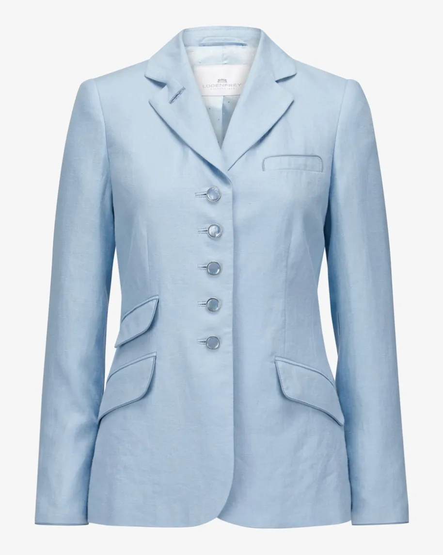 St. Gallen Leinen-Trachtenblazer für Damen von LODENFREY München 1842 inHellblau. Das taillierte Modell überzeugt dank fein strukturierter Leinen-Qualität sowohl haptisch als auch optisch, während die changierenden Knöpfestilvolle Akzente setzen und so einen femininen Begleiter für moderne Trachten-Looks kreieren.