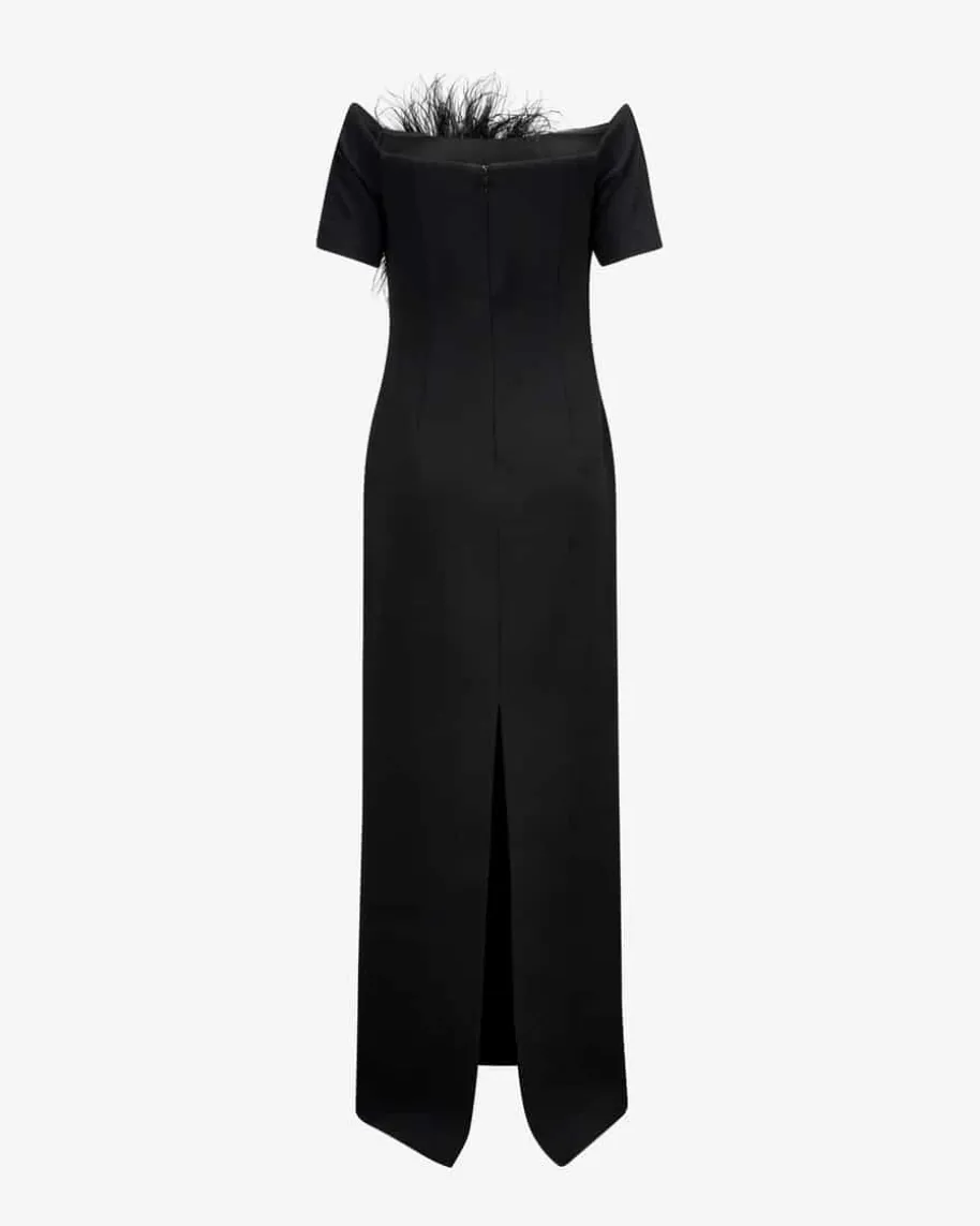 Starlight Kleid für Damen von Rebecca Vallance in Schwarz. Das taillierte Modellmit extravaganten Schmuckstein-Applikationen und Straußenfeder-Besatz zeigt sichals modischer Favorit. – Perfekt für besondere Anlässe, vereint es Stil undRaffinesse in einem atemberaubenden Design.
