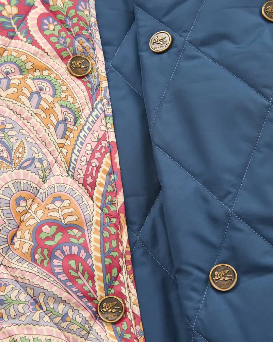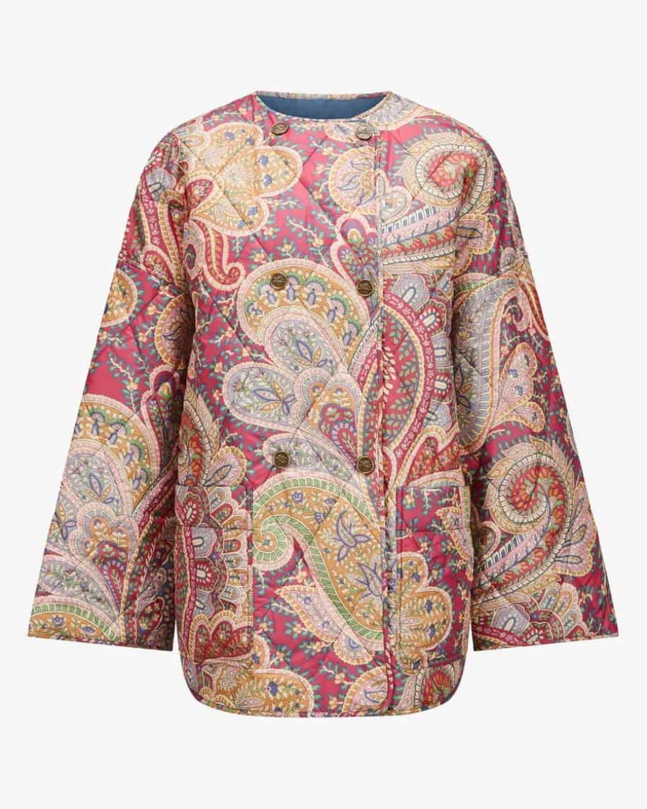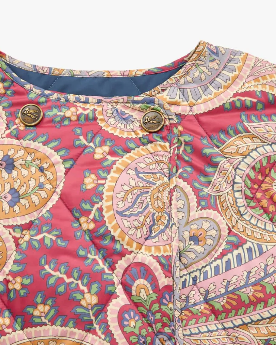 Steppjacke für Damen von Etro in Bordeaux und Bunt. Das Modell überzeugt dankdem weiten Schnitt sowie der doppelreihigen Logo-Knopfleiste als modernerJacken-Begleiter mit Kimono-Charakter, welcher durch das leichte Rautenstepp-Design mit floralem Paisley-Muster zu einem besonderen Übergangs-Favoritenavanciert.