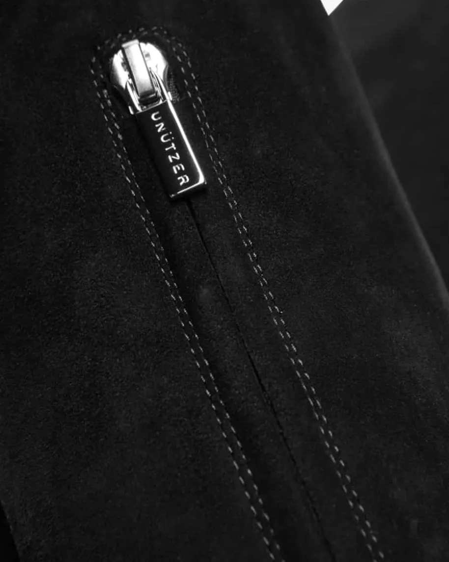 Stiefel für Damen von Unützer in Schwarz. Das Label aus Venedig steht für edleSchuhe, oft mit femininen Details – klassische Handwerkskunst mit italienischemFlair. Dieses Modell präsentiert sich dank der hochwertigen Veloursleder-Verarbeitung sowie dem elastischen Schaft in edler Aufmachung und mit hohemTragekomfort, während die schmale Silhouette den Equestrian-Charakter gekonnt inSzene setzt.
