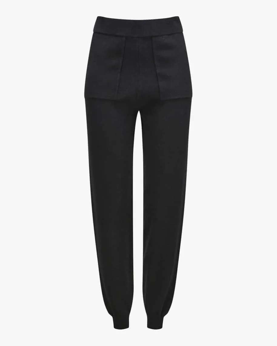 Strickhose für Damen von LODENFREY in Schwarz. Während die hochwertige Cashmere-Qualität für angenehme Tragemomente sorgt, schafft die legere Joggpants-Aufmachung mit schmalem Bein und aufgesetzten Taschen einen gemütlichen Strick-Favoriten.