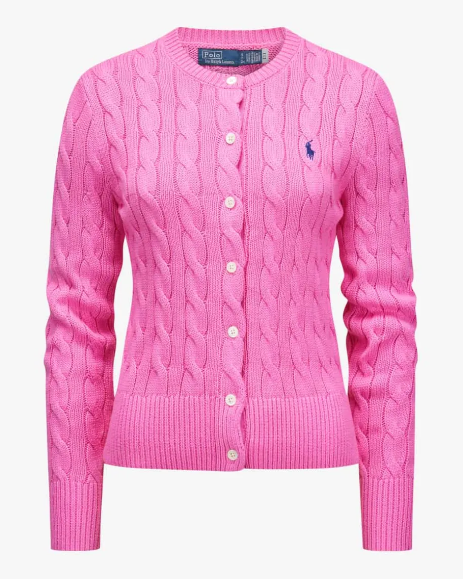 Strickjacke für Damen von Polo Ralph Lauren in Rosa. Das Modell im sportivenHeritage-Look begeistert mit hochwertiger Baumwolle und hohem Tragekomfort.Stilvoll abgerundet wird das Design durch die kontrastierende Logo-Stickerei aufder Brust sowie das klassische Zopf-Strickmuster.