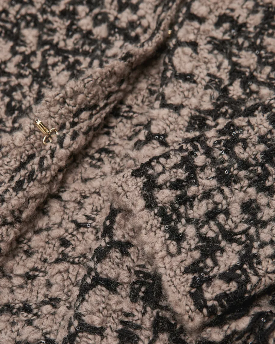 Strickjacke für Damen von Fabiana Filippi in Schwarz und Taupe. Die italienischeMarke steht für moderne Eleganz, hochwertige Materialien und dezente Farbwelten.Das Bouclé-Modell überzeugt sowohl haptisch als auch optisch in angenehmem Woll-Mix, während eingearbeitete Pailletten- und Fransen-Details einen eleganten Lookzaubern.